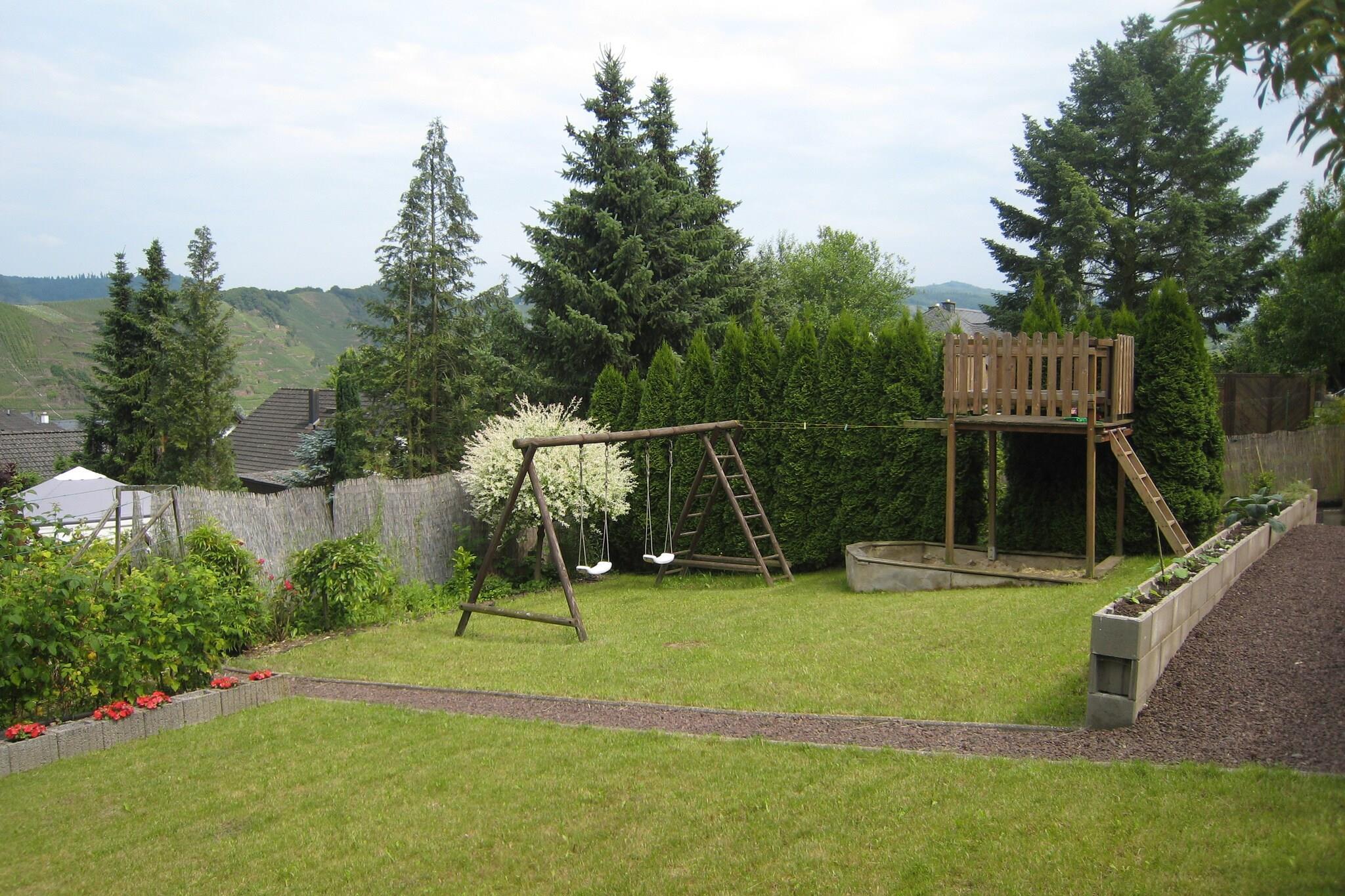 I den romantiske vin udvej Bremm, ved foden af Calmontsteig, den stejleste vingård i Europa, er dette familievenlige feriehus beliggende. Huset har en stor have med legeplads til sommerdage og en kælder med fodbold og bordtennis spil til de regnfulde dage. Første sal har 2 private værelser, der ikke kan lejes, den store overdækkede balkon forbliver til din rådighed med en storslået udsigt over Mosel fra en komfortabel typisk tysk kurvstol. På anden sal finder du de andre soveværelser og et badeværelse . Dette gør huset ideel til større familier eller familier, der rejser med deres bedsteforældre. Bremm er til din Moselle-opdagelsesferie det ideelle udgangspunkt. Bremm er kendt som den smukkeste landsby, og stedet tilbyder lokale retter, butikker og selvfølgelig vinbarer. Udflugter til de gamle broer, zoologiske haver, Nürburgring er ikke langt væk. Aktiviteter som kano, paragliding, hestevæddeløb, ridning på Calmontsteig, krydstogter på Mosel og cykling langs kysten er alle mulige.