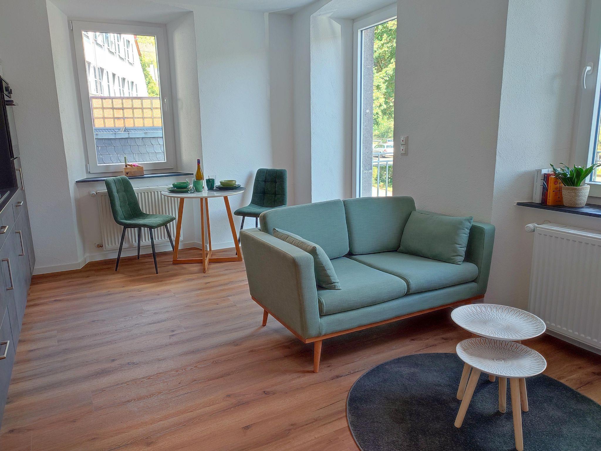 Beim Betreten dieser Ferienwohnung, werden Sie von einer Welt empfangen, in welcher Tradition und Moderne in harmonischer Symbiose existieren, und das behagliche Wohnzimmer, das Herzstück der Ferienwohnung, wird durch eine integrierte, voll ausgestattete Küche ergänzt. Hier können Sie gemeinsam köstliche Mahlzeiten zubereiten und dabei die beeindruckende Aussicht genießen, während die umliegende Landschaft Sie verzaubert.