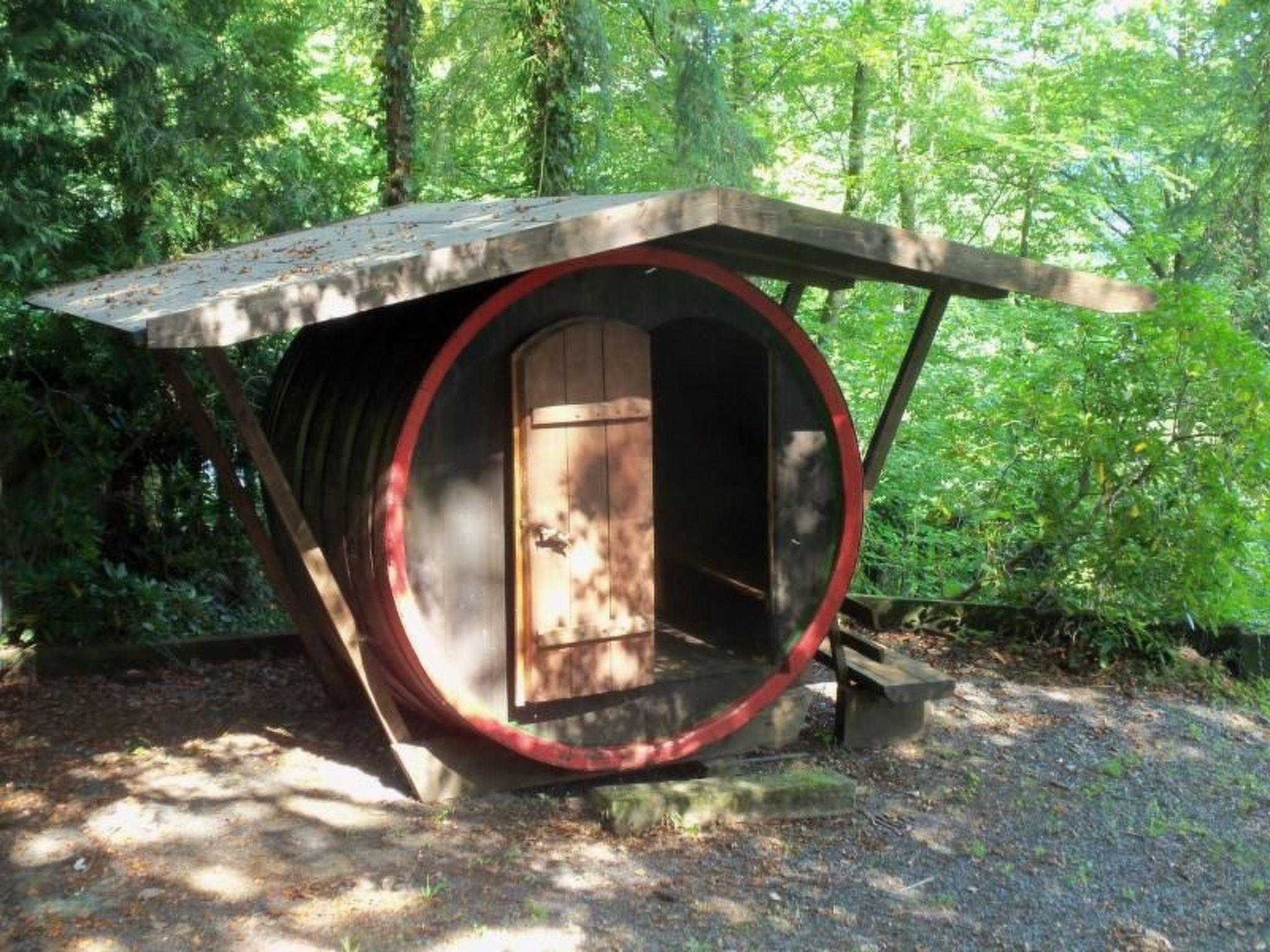The holiday accommodation is in a natural garden measuring 1250m². The garden terrace has a canopy beach chair and various loungers. A grill is available. There is also a wine barrel of around 9000 litres on site. You can have a siesta in the garden or sit together sociably. The garage has a protruding roof protecting bicycles from rain. Two car parking spaces are available on site, within sight from the house.