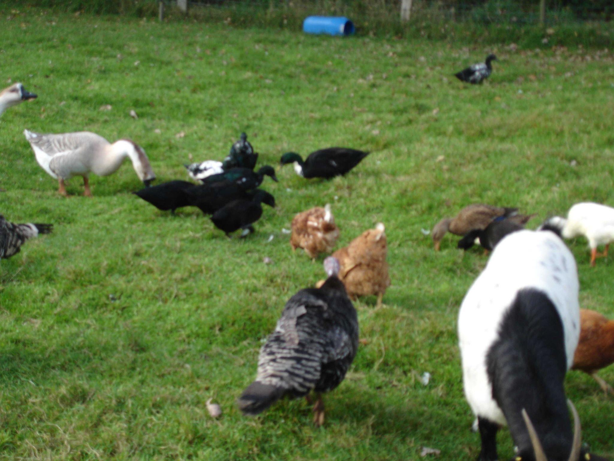 Auf dem Hof ist ein Spielplatz mit Schaukel, Rutsche und Wippe. Außerdem halten wir Hausgeflügel, wie Hühner, Gänse, Puten, Enten und Streicheltiere, wie Kaninchen und Katzen sowie Ponys für kleine Pferdefreunde.