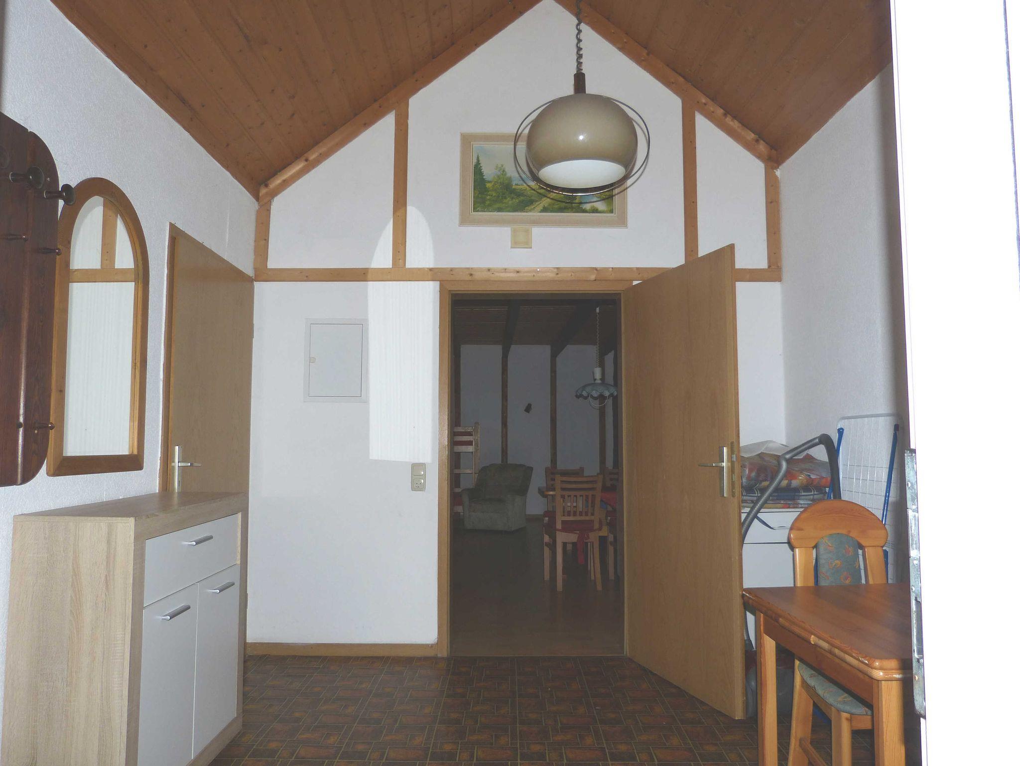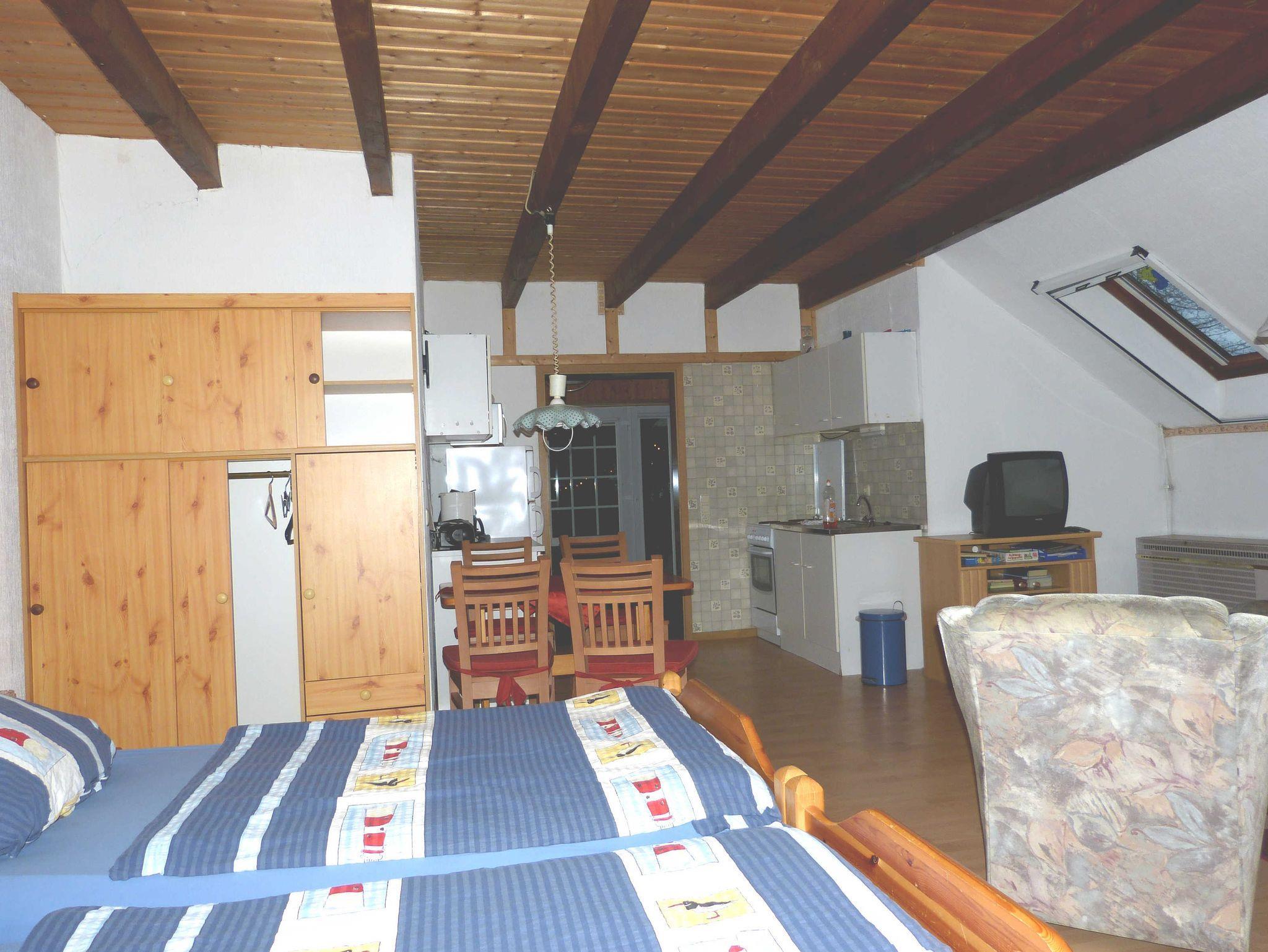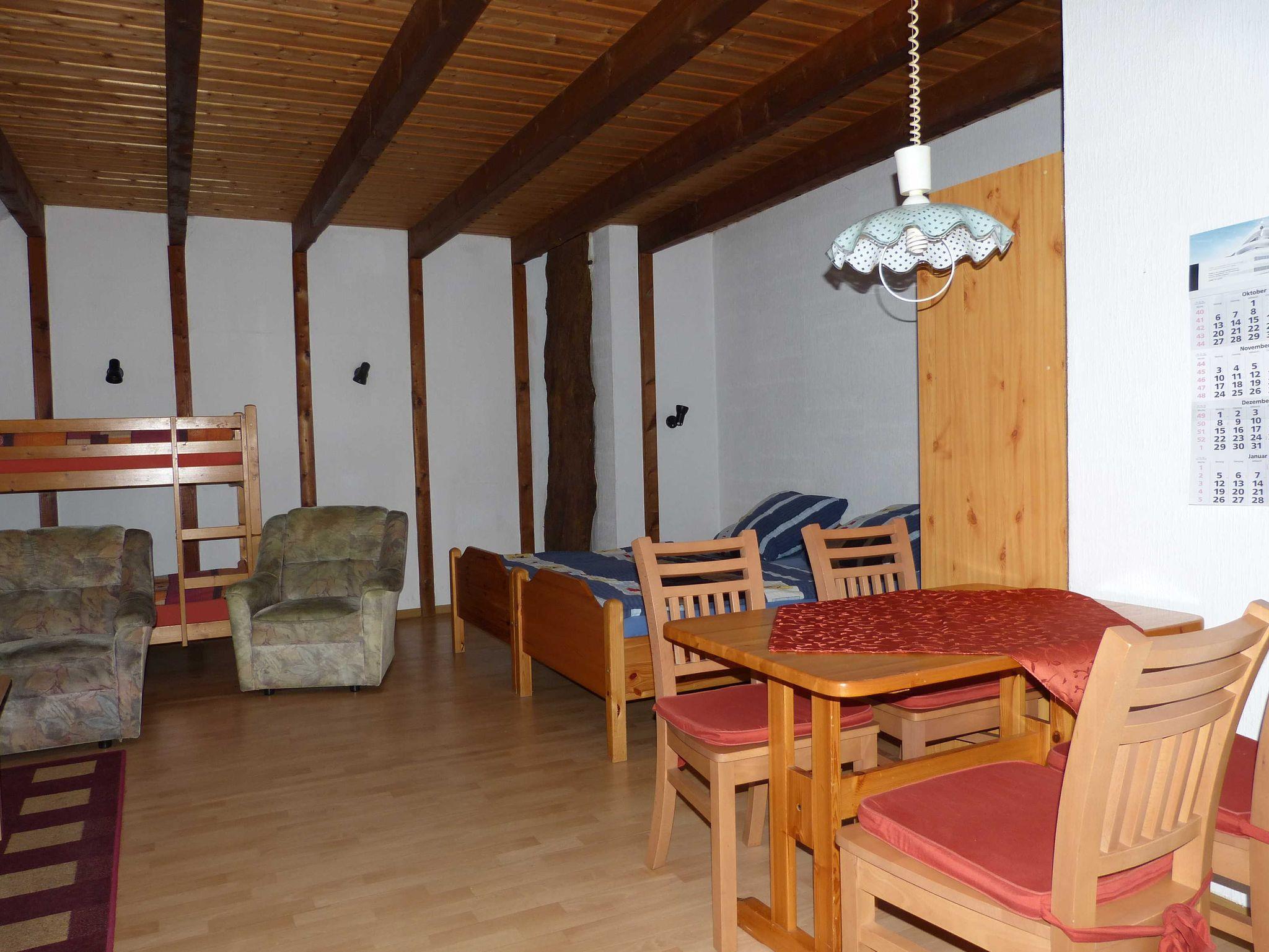 Der Pferdestall ist ebenerdig, hat breite Türen, keine Stufen und eine flache Dusche ohne Rand. Die Eingangsdiele ist 3x3m breit. Der Wohnschlafraum mit Holfbalkendecke ist ca. 42qm groß hat insgesamt 4 Betten - davon sind 2 Etagenbetten, es gibt eine Küchenzeile, eine Sitzgruppe, eine Essgruppe und Kabel TV. Die gesamte Nutzfläche der Wohnung beträgt mit Bad und Diele ca.60qm.