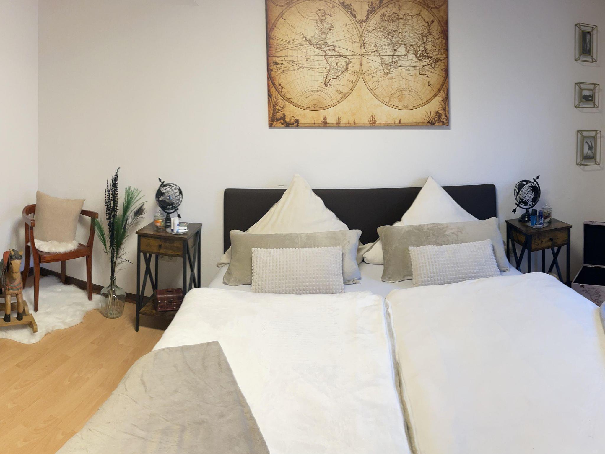 Die kleine, liebevoll eingerichtete Ferienwohnung mit Schlafzimmer, Bad, Küchenzeile mit Wohnraum ist ideal für 2 Personen. Kostenlose Parkmöglichkeit direkt am Haus. Die Küche ist ausgestattet mit allem, was eine gute Küche benötigt. Das geräumige, helle Schlafzimmer bietet Platz für max. 2 Personen. Ein kuschliges Boxspringbett lädt zum Wohlfühlen ein. Bettwäsche ist im Preis inbegriffen.