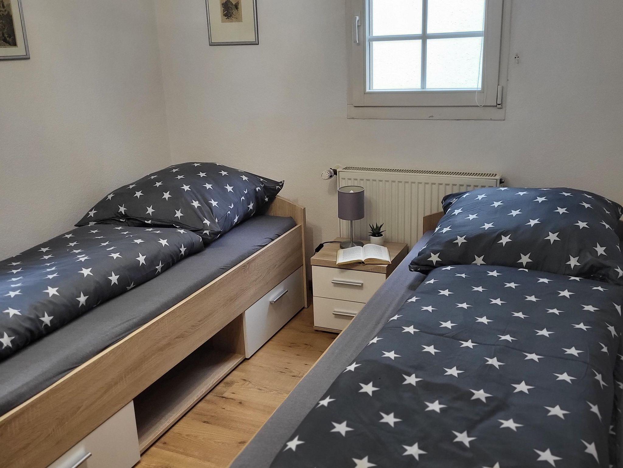 Das Ferienhaus verfügt im Erdgeschoss über einen Wohnbereich mit einem Smart-SAT-TV, ein DVD-Player und eine Spielekonsole sowie ein CD-Player. Die vollständig eingerichtete Küche ist mit einem Geschirrspüler, einem Backofen, Herd, Toaster, Kaffeemaschine, Wasserkocher, Geschirr und Haushaltsartikel ausgestattet. Zudem befindet sich das Bad mit Dusche/ WC und einer Badewanne sowie einem Fön im Erdgeschoss. Im ersten Stock befinden sich zwei Doppelschlafzimmer (inkl. zwei zusätzlichem Smart-Sat-TV, ein weiteres Zimmer mit zwei Fernsehsessel).