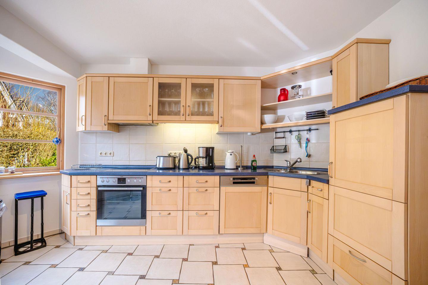 Die Wohnung wurde im Jahr 2020 neu gestaltet und im nordischen Stil eingerichtet. Die drei Schlafzimmer grenzen an den zentralen Wohnraum. Zwei Schlafzimmer sind mit jeweils einem Doppelbett, Kleiderschrank und modernen Fernsehgeräten ausgestattet, das dritte Schlafzimmer ist mit zwei Einzelbetten ausgestattet. Durch den schnellen Glasfaser-, Anschluss haben Sie die Möglichkeit, eigene Streamingdienste, wie z.B. Netflix, zu nutzen. Im Wohnzimer befindet sich ein Biofire Ofen, der an kälteren Tagen wohlige Wärme verbreitet. Der Essbereich mit einem großen, ausziehbaren Esstisch befindet sich in einem kleinen Wintergarten. Von hier hat man einen tollen Blick in den großzügigen Garten. Auf der angrenzenden Terrasse finden Sie neben gemütlichen Gartenmöbeln auch einen Holzkohlegrill. Der große Garten lädt zum Entspannen oder Toben ein, er ist teilweise eingezäunt.
