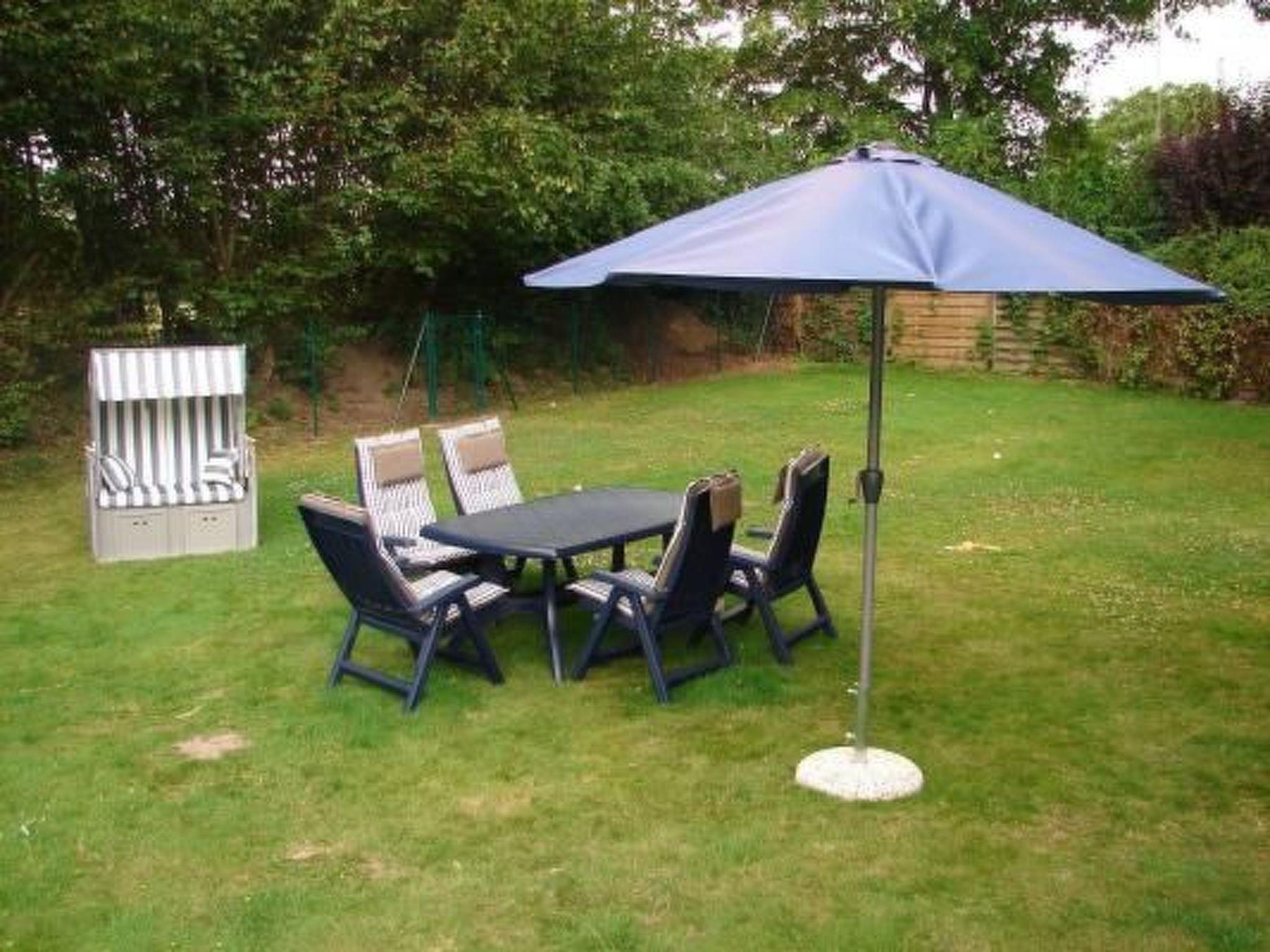 The balcony has a little table and two chairs where you can end the evening with a glass of wine or start the day with a cup of coffee. The kitchen has a terrace door opening out into the ca. 750m² garden, which is completely fenced, so that children or dogs can run around freely. The garden has a sandpit, a garden suite, a round grill and of course a canopy beach chair for sunny days. Two car parking spaces are available.