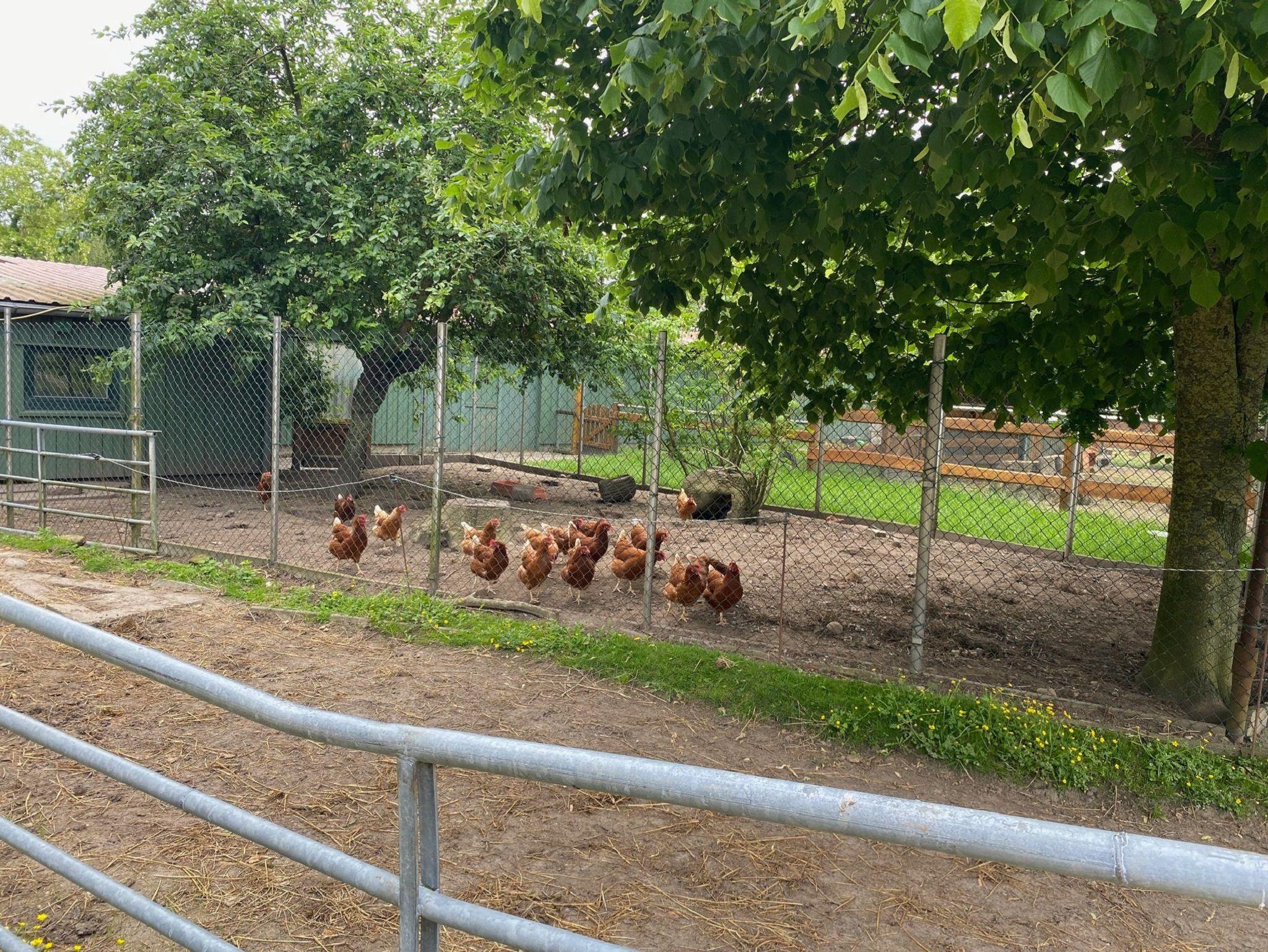 Der Innenhof verfügt über einen großzügig angelegten Spiel- und Freizeitbereich mit viel Sand. Zahlreiche Kleintiere und zwei Ponys zum Streicheln und Liebhaben warten in ihren natürlichen Gehegen auf unsere kleinen Gäste.