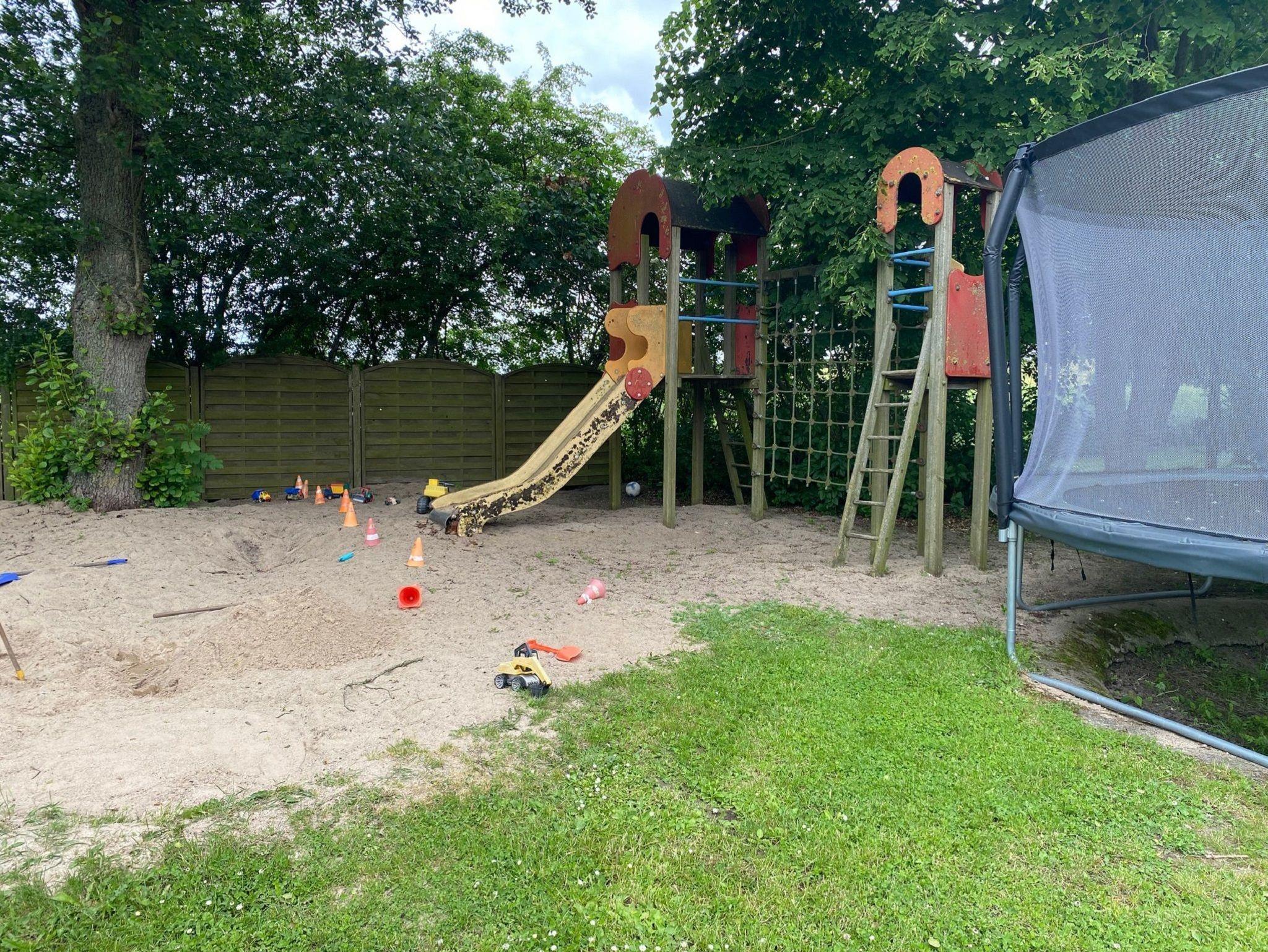 Der Innenhof verfügt über einen großzügig angelegten Spiel- und Freizeitbereich mit viel Sand. Zahlreiche Kleintiere und zwei Ponys zum Streicheln und Liebhaben warten in ihren natürlichen Gehegen auf unsere kleinen Gäste.