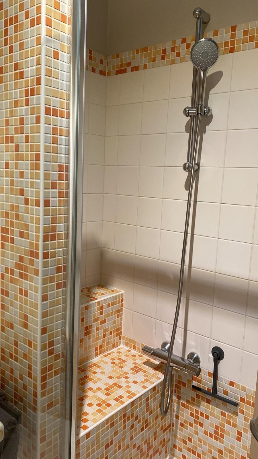 Unser Badezimmer verfügt über eine großzügige Dusche mit Sitzmöglichkeit und ein WC. Einen Fön haben wir hier bereits für sie hinterlegt. Ihre persönlichen Sachen finden Platz in einer Badezimmerkommode.