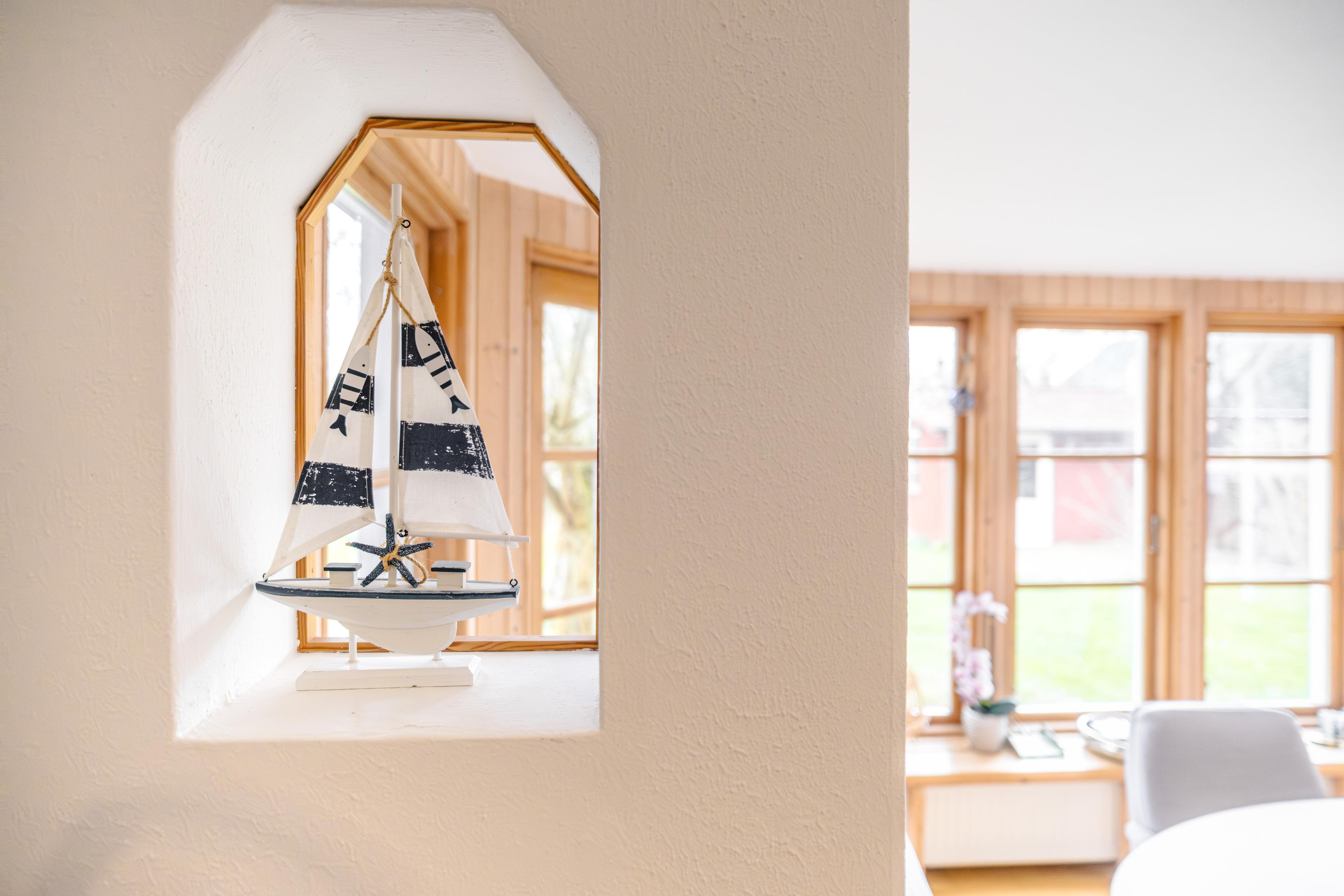 Gemütliche Ferienwohnung im Schwedenhaus "Odin" in Brodersby-Goltoft – ideal für Familienurlaub mit Hund nahe der Schlei, mit eingezäuntem Garten, Wintergarten, Terrasse und Streaming über Glasfaser.