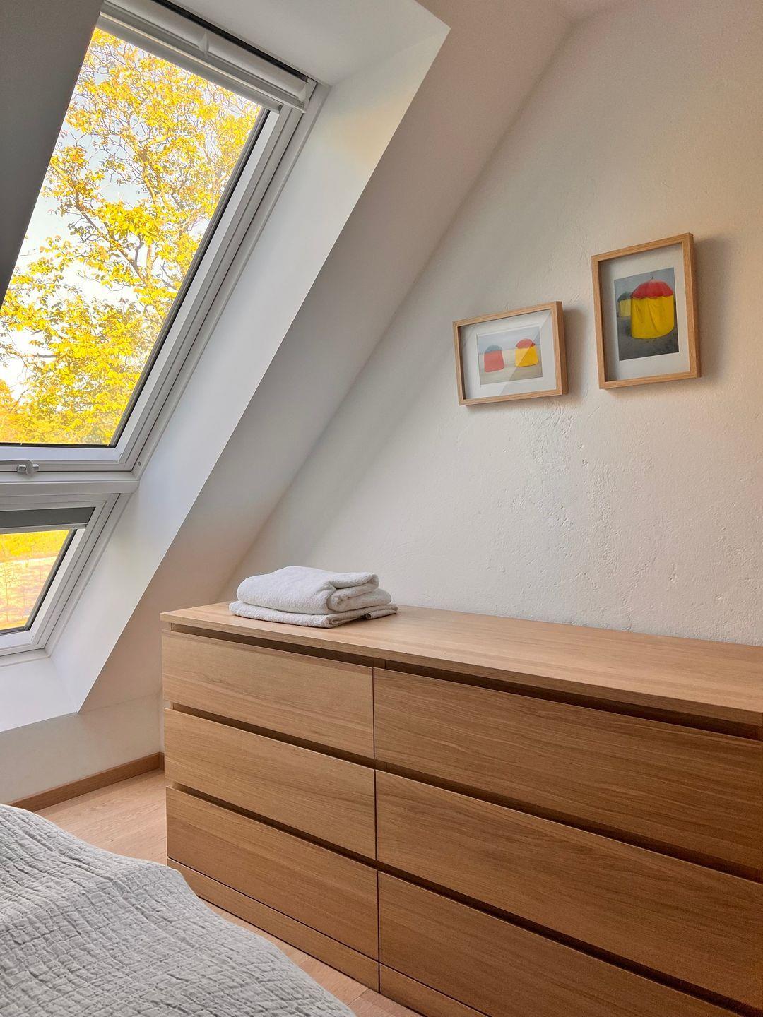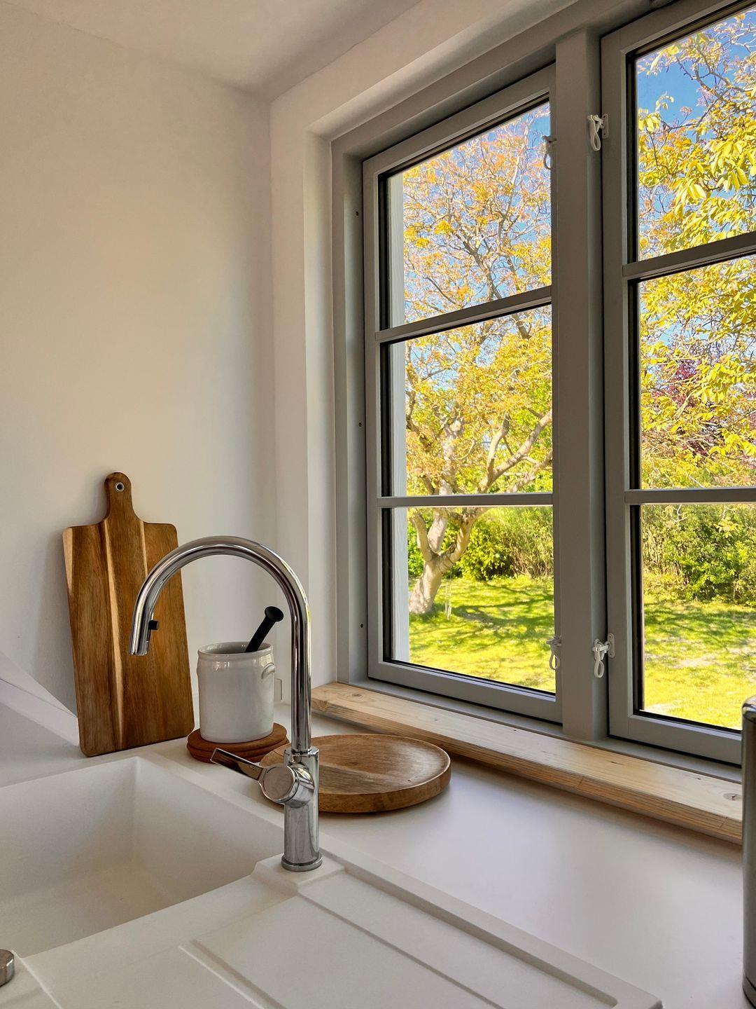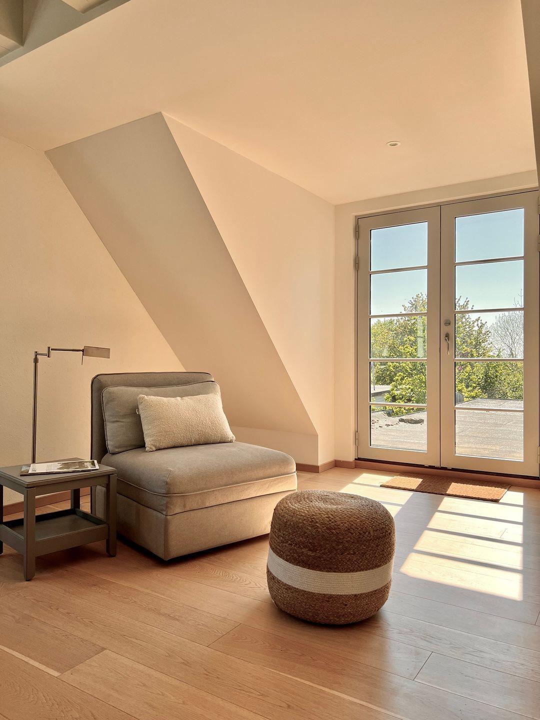 Erleben Sie erholsame Tage in unserer Ferienwohnung "Sommerby Sky" mit großen Fenstern und Gartenblick. Die Wohnung im 1. Obergeschoss ist stilvoll eingerichtet. Die offene Küche ist voll ausgestattet. Ein modernes Duschbad und drei komfortable Schlafmöglichkeiten sorgen für Wohlbefinden. Ein helles Arbeitszimmer im 2. Obergeschoss und ein PKW-Stellplatz mit E-Ladesäule (ab Oktober 2024) sind vorhanden.