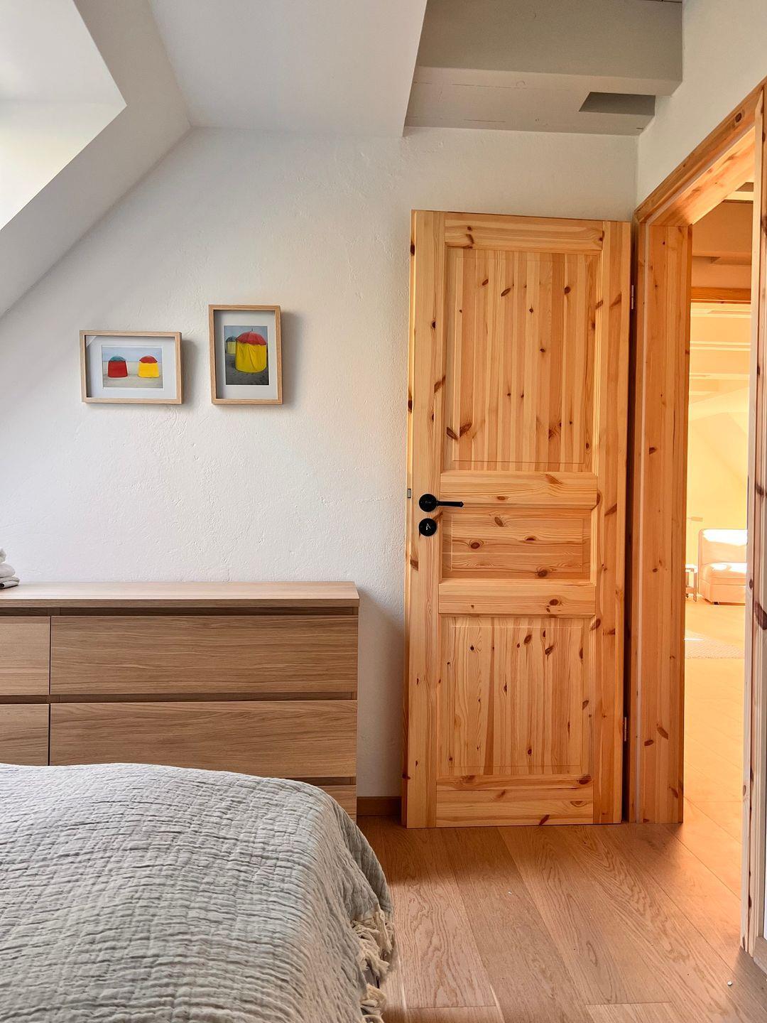 Zwischen Schlei und Ostsee liegt das große Grundstück mit altem Baumbestand. Das Haus "Sommerby" verfügt über 2 Ferienwohnungen. Die Wohnung "Sommerby Sky" liegt im Obergeschoss und bietet auf ca. 70m² für bis zu 3 Personen Platz. Der parkartig angelegte Garten bietet viel Auslauf, schöne Sonnenuntergänge und einen alten Obstbaumbestand. Die helle Wohnung ist im modernen Landhausstil eingerichtet. Dank der offenen Gestaltung zum großzügigen Wohnbereich mit Flachbild-Fernseher genießen Sie hier gemeinsame Stunden in behaglicher Atmosphäre. Das moderne Duschbad ist mit einem Kosmetikspiegel und einem Fön ausgestattet. Für eine erholsame Nachtruhe bieten wir Ihnen drei Schlafmöglichkeiten: Ein Schlafzimmer mit einem komfortablen Doppelbett (160x200cm) für zwei Personen, sowie ein weiteres Schlafzimmer mit einem komfortablen Einzelbett (140x200cm) eingerichtet. Im 2. Obergeschoss erwartet Sie ein kleines Arbeitszimmer mit Schreibtisch - ideal für konzentriertes Arbeiten oder kreative Momente. Ab Oktober 2024 werden eine Waschmaschine und ein Trockner im Erdgeschoss vorhanden sein, die gemeinschaftlich mit der unteren Ferienwohnung genutzt werden können. Für Ihren PKW steht ebenfalls ab Oktober ein Stellplatz mit einer 11KW E-Ladesäule bereit, sodass Sie Ihr Elektrofahrzeug bequem vor Ort laden können. Der großzügige hintere Garten steht Ihnen gemeinschaftlich mit der unteren Ferienwohnung "Sommerby Garden" zur Verfügung. Ebenso steht hier ein Trampolin bereit. Lassen Sie den Tag bei einem herrlichen Sonnenuntergang ausklingen. Gern dürfen Sie sich auch bei den Früchten der alten Obstbäume bedienen. Unsere Ferienwohnung ist der perfekte Rückzugsort für einen erholsamen Strandurlaub oder Ausgangspunkt für herrliche Radtouren durch die schöne Landschaft Schwansens. Die Ostsee liegt ca. 4,5km entfernt. Innerhalb von 10 Minuten ist der Strand per Auto erreicht. Die Strecke zum Weidefelder oder Schönhagener Strand (Steilküste) führt durch die Felder am Meer und ist ein Erlebnis für sich. Der ca. 4km entfernte kurtaxe-freie Weidefelder Strand zeichnet sich schon lange Jahre durch seine hohe Badewasserqualität aus. Er bietet eine weiten weißen Strandabschnitt hinter naturbelassenen Feldern, ein Strandrestaurant und eine Surfschule sowie die Bewachung der DLRG. Ausflüge in die Geltinger Birk, nach Maasholm, das nahe gelegene Arnis, Kappeln oder Sieseby sind zu jeder Jahreszeit eine Empfehlung. Das Glücksburger Schloss mit alter Orangerie und neuer Gastronomie erreichen sie ebenso wie das Museum Schloss Gottorf in Schleswig mit dem Auto in ca. 40 Minuten.