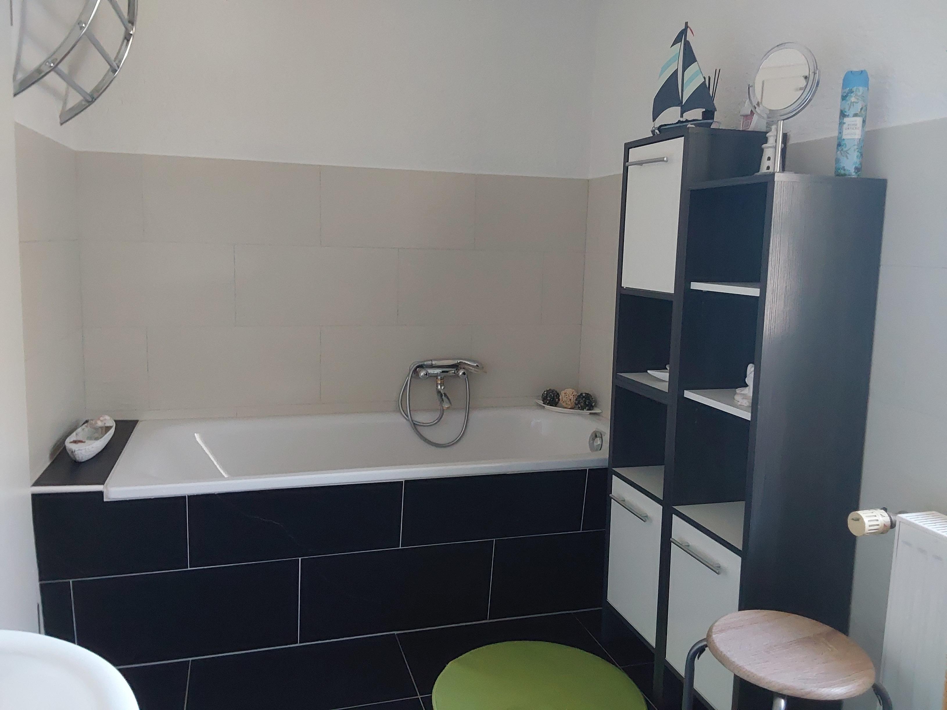 Badeværelse med bruser og badekar