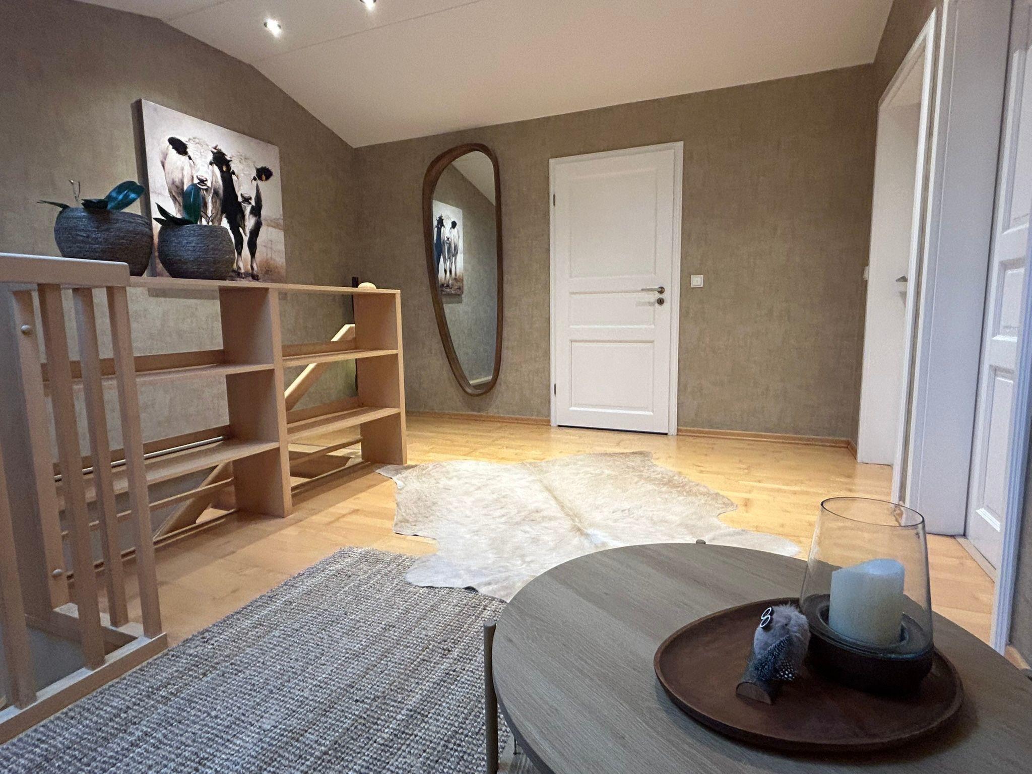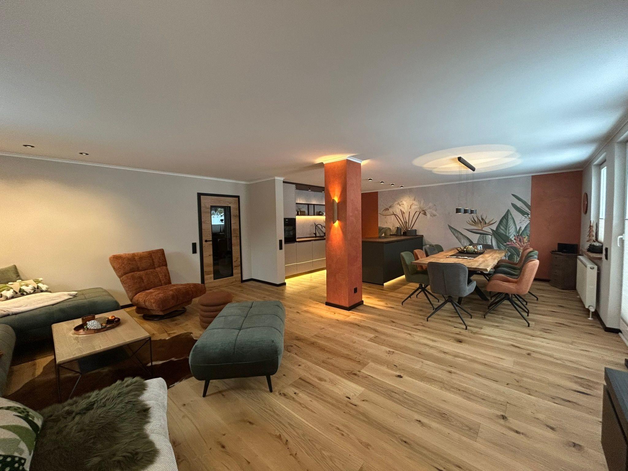 Inside, the chalet enchants with its well thought-out room layout and stylish interior design. On the ground floor, the open-plan kitchen and living area invites you to linger together, complemented by a spacious bathroom and two charming bedrooms. The upper floor houses two further cosy bedrooms and an additional bathroom, both of which offer comfort and privacy.