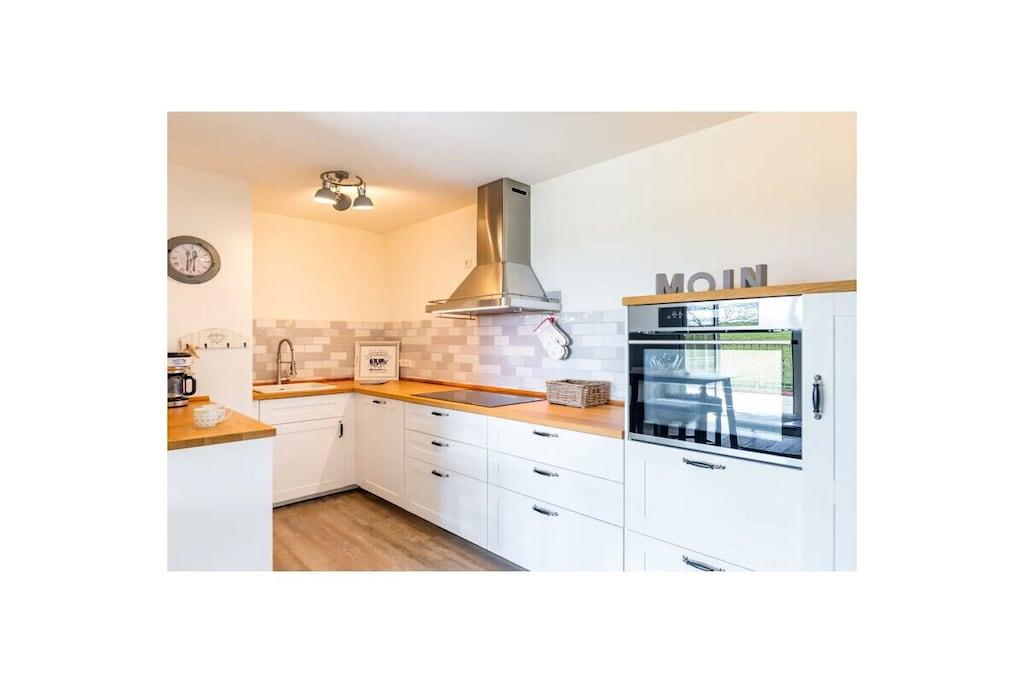 Vores smukt møblerede 5-værelses maisonette ferielejlighed ligger i hjertet af slusebyen Brunsbüttel, direkte ved Elbens dige. Lejligheden blev omfattende renoveret i 2019 og tilbyder rigelig plads til 2-3 personer på cirka 98 kvadratmeter. 1. sal: Lys entré med garderobe, Køkken af høj kvalitet med tilstødende stue/spisestue, gulv-til-loft-vinduer og adgang til balkonen, Separat spisestue med gulv-til-loft-vinduer og adgang til balkonen, Gæstebadeværelse med vaskemaskine Loftrum: Moderne brusebadeværelse, Stue/arbejdsområde med skrivebord og indbydende siddegruppe, Hyggeligt soveværelse med en 140x200 cm dobbeltseng, Opholdsstue med udsigt over Elben Ophold med baby/barn er velkomne efter anmodning; vi kan tilbyde en passende soveplads. Her venter din "drømmeferie under stråtag".