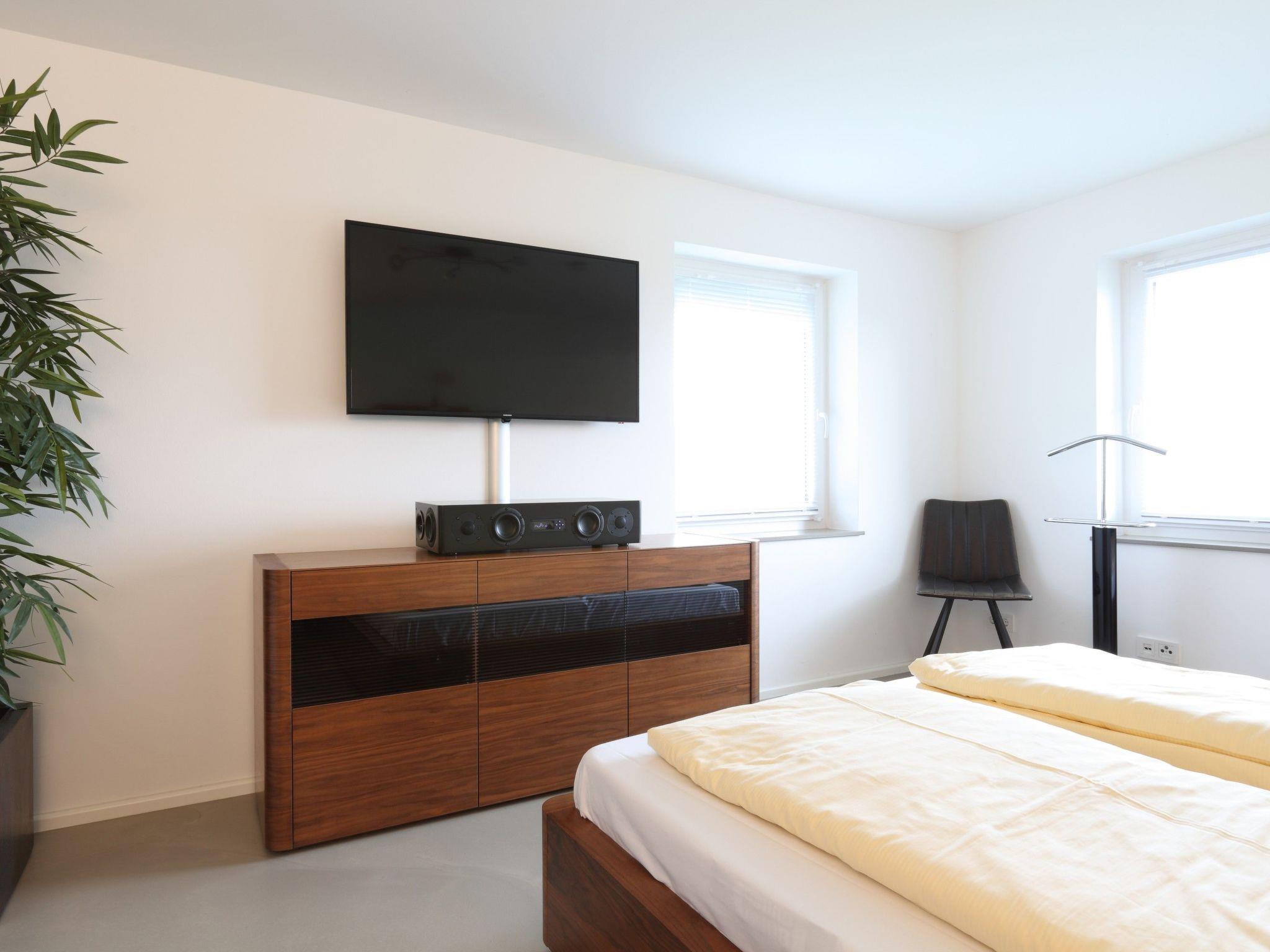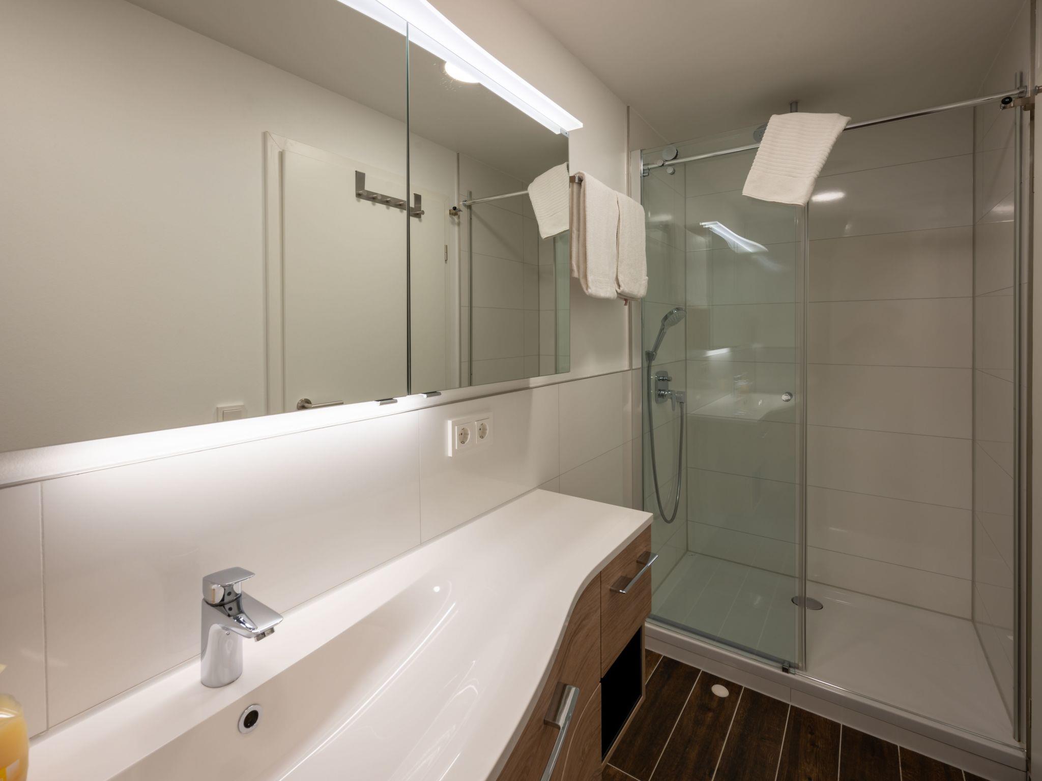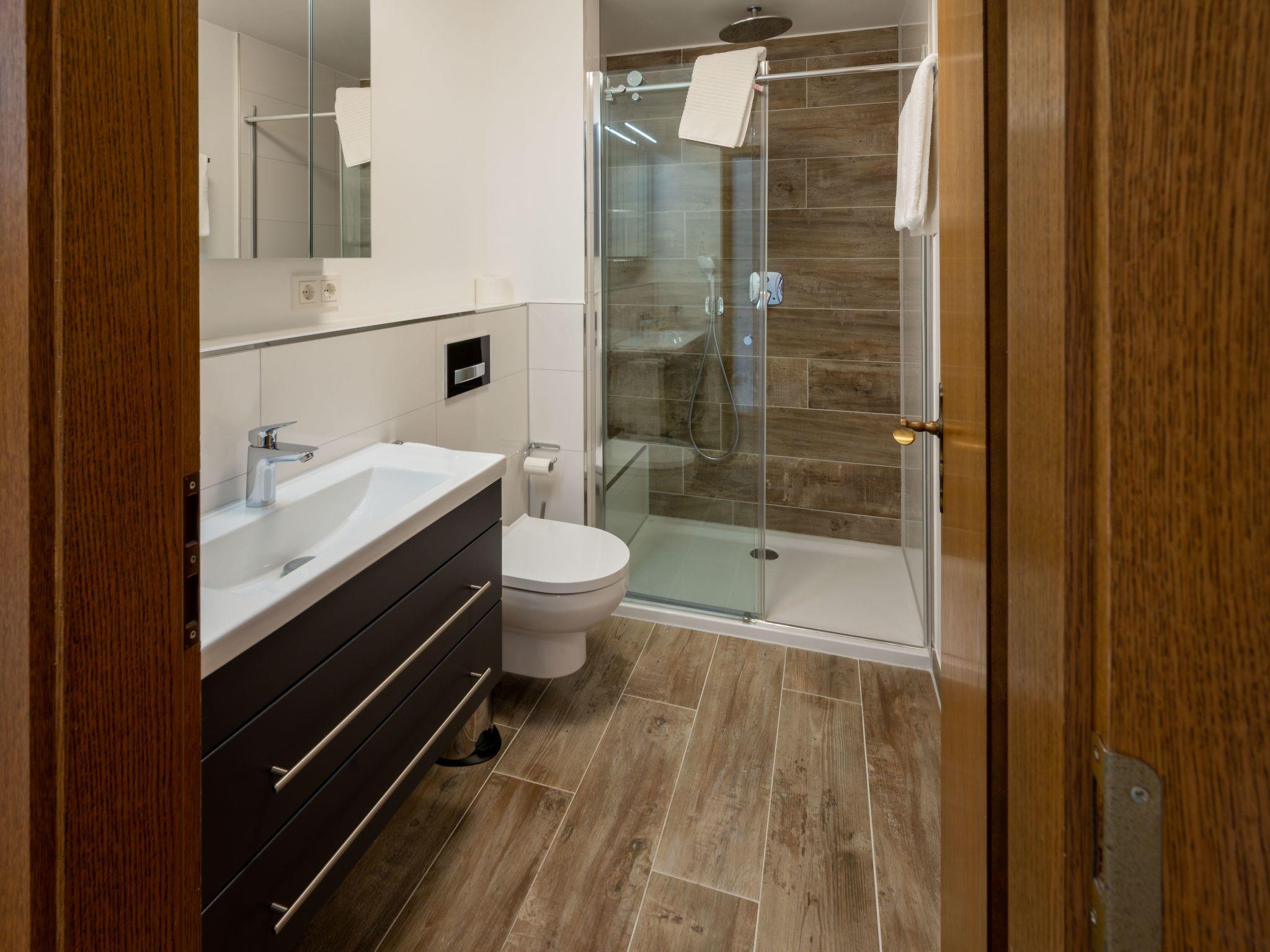 The equipment is always kept up to date and the house consists of 4 flats with separate entrances. We offer 4 kitchens, 4 living rooms and 4 dining tables with enough chairs. The house offers a total of 37 beds and there is a sauna and two whirlpools in the outdoor area. The entire outdoor area can be used as a terrace. 2 of the flats extend over 2 floors, these flats can also be connected with a connecting door. One of the other flats is barrier-free and has 2 bedrooms.