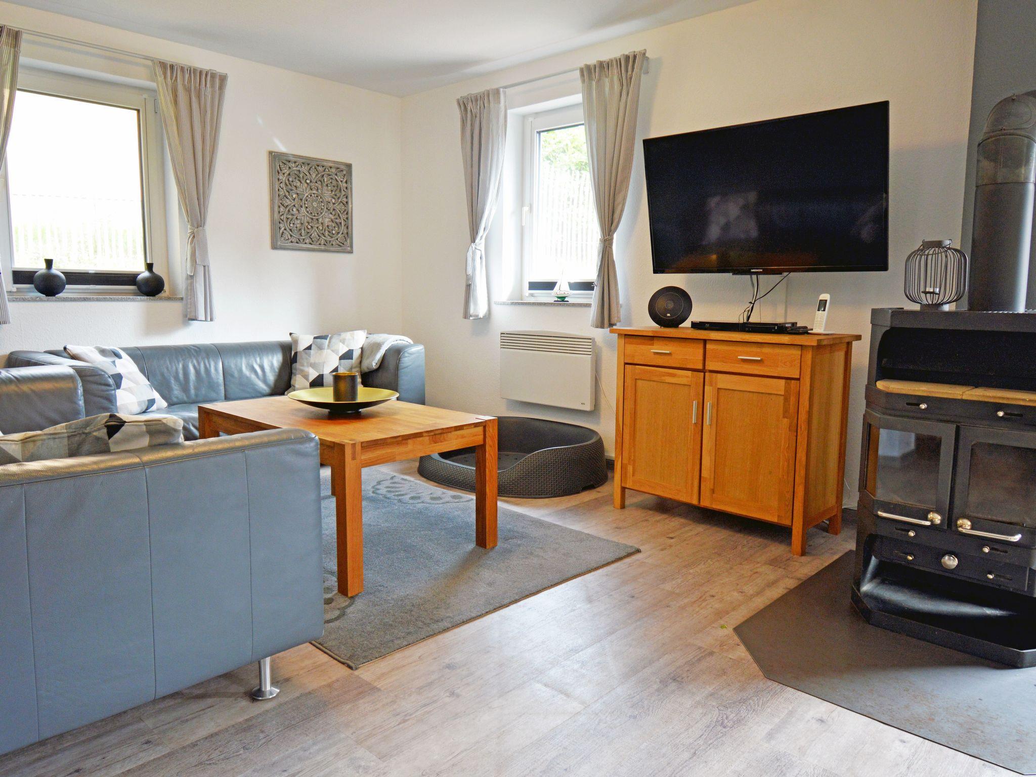 Our 4-star holiday home has an exclusive interior with a large fireplace, WLAN with up to 100 Mbit/s, 49'' UHD Smart TV with Blu Ray player, Wii, play corner with toys and colouring materials, children's books, children's music, portable MP3/CD player, 2 x high chair, 1 x TrippTrapp, 2 x travel cot, changing table, stair gate. 3 bedrooms and a bathroom with large shower and washing machine.
