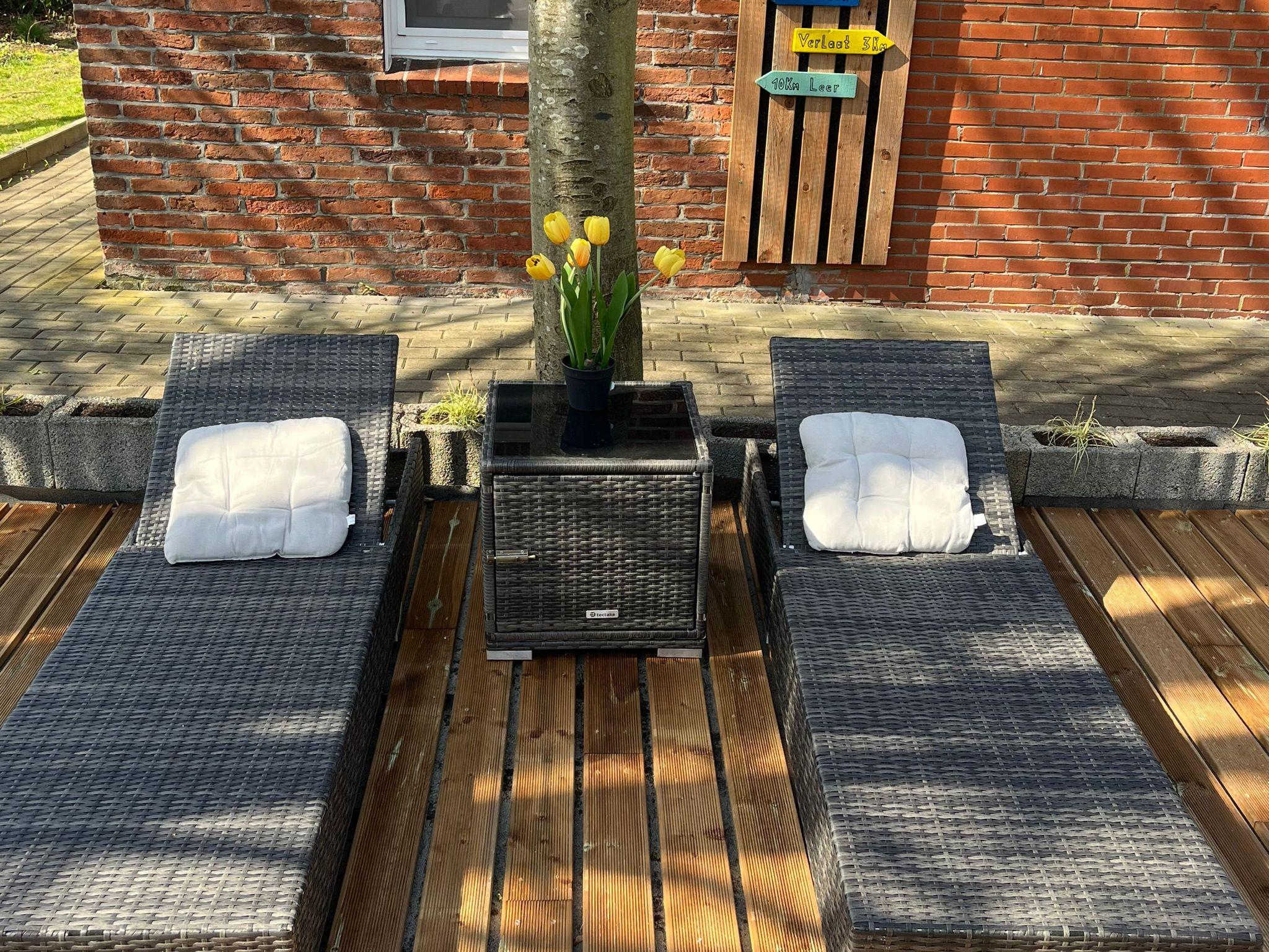 Unser Ferienhaus hat ca. 150 qm Wohnfläche, verteilt auf 2 Etagen. Im Erdgeschoss befinden sich 1 Schlafzimmer mit einem Boxspringbett (1,60 x 2 m) mit TV, 2 Badezimmer mit Duschen, Küche und Wohnstube mit einem Wandelektro-Kamin und einen Essbereich. Über eine breite Treppe kommt man ins Obergeschoss, wo sich 2 weitere Schlafzimmer mit Doppelbetten befinden. Diese Zimmer sind ebenso mit Fernsehgeräten ausgestattet. Zusätzlich können, auf Anfrage, in den Zimmern die Schlafmöglichkeiten durch Kinder/Erwachsenen Reisebetten erhöht werden. Ab sofort können wir unseren Gästen zusätzlich eine Infrarotsauna anbieten, die vor Ort dazu gebucht werden kann. Handtücher und Bettwäsche für das Ferienhaus sind im Preis enthalten. Das Haus befindet sich auf einem umzäunten Grundstück im Ortsteil Dollart. Auf ca. 200 qm Gartenfläche, finden Sie eine mit Gartenmöbeln ausgestattete, überdachte Terrasse, Grillplatz und eine Spielecke für Kinder. Neu ist unsere großzügige Holzterrasse mit gemütlichen Loungemöbeln. Da wir ein Nichtraucherhaus sind, haben wir im Außenbereich eine überdachte Raucherecke für Sie eingerichtet. Kinder und Hunde sind gerne gesehen. Für unsere kleinen Gäste können wir Reisebetten, Hochstühle, Wickelauflagen und Türgitter kostenlos mit anbieten. Bei Bedarf, bitte bei der Buchung mit angeben. Bitte beachten Sie bei der Buchung auch die Preisvereinbarungen in den Altersgruppen für Kinder. Für unsere 4-beinigen Gäste liegen, Näpfe, Decken und Handtücher bereit. Bitte beachten Sie, dass Hunde kostenpflichtig sind und mit angegeben werden müssen.