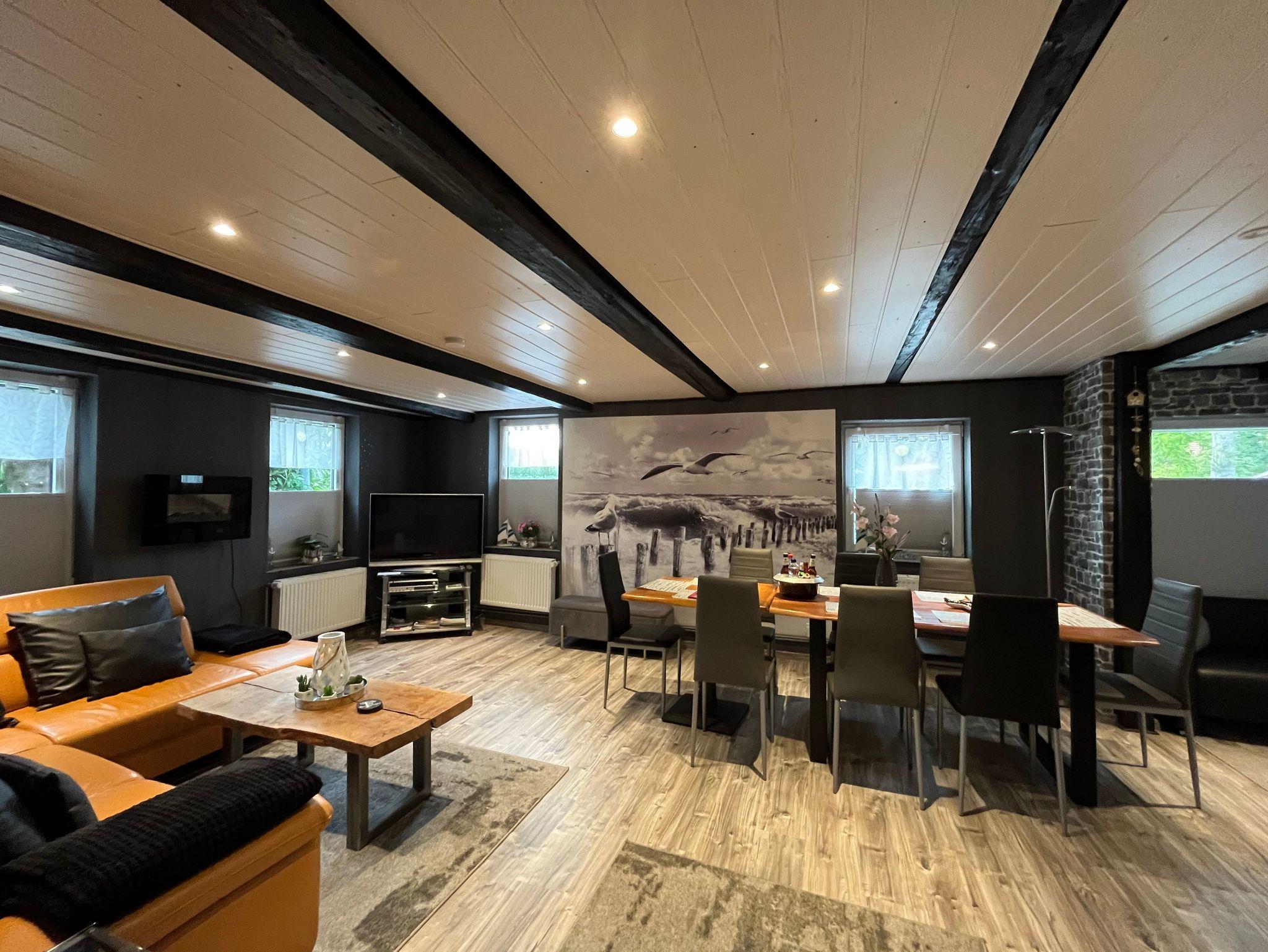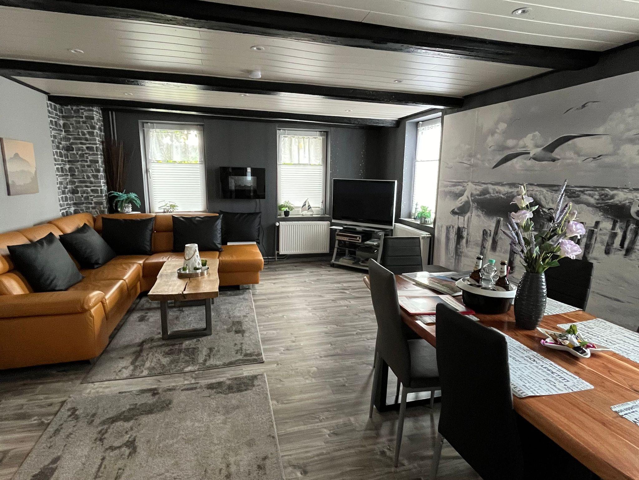 Gemütliches Ambiente auf 2 Etagen ca. 150 m². Im Erdgeschoss große Wohnstube, Doppelzimmer (1,60 m Bett), 2 Bäder und Küche. Im ersten Obergeschoss zwei große Doppelzimmer (je ein 2,00 m Bett) und Schlafsofa (für jeweils 2 Personen). Das Wohnzimmer sowie alle Schlafzimmer sind mit Flachbildfernsehern ausgestattet. Ausgezeichnet mit 5 Sternen und 5 Pfoten. Gute Ausgangslage für Aktivitäten. Kinder unter 3 Jahren sind kostenlos, Kinder bis 12 Jahre erhalten 25% Ermäßigung.