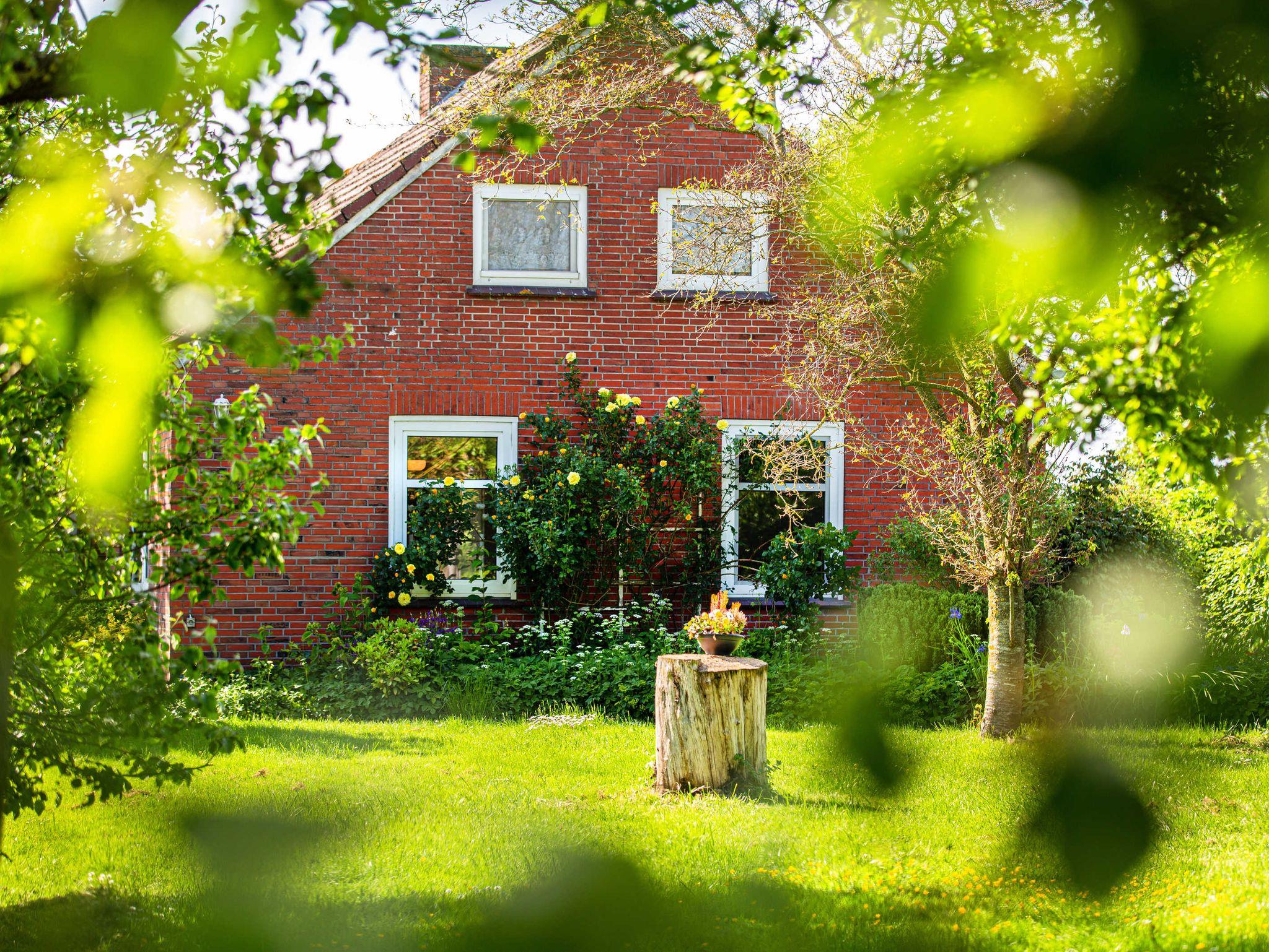 Das Haus hat 2 voneinander getrennte Wohnungen und ist typisch ostfriesisch, aber sehr einfach eingerichtet. Wer Wert auf moderne Möbel und Komfort legt, ist hier ausdrücklich an der falschen Adresse. Zum Haus gehört ein Grundstück mit 1500qm Fläche mit 2 großen Gärten mit Obstbäumen (Apfel, Birne, Pflaume, Kirsche), Johannisbeer- und Stachelbeer Streuchern, und einem großen Fahrradschuppen (5 alte Fahrräder vorhanden!). Je nach Tageszeit kann man entweder im vorderen Garten entspannen und speisen, oder hinter dem Haus sitzen und der Sonne beim Untergehen hinter dem Deich zuschauen, und sich die frische Nordseeluft bei einem kühlen Jever um die Nase wehen lassen.