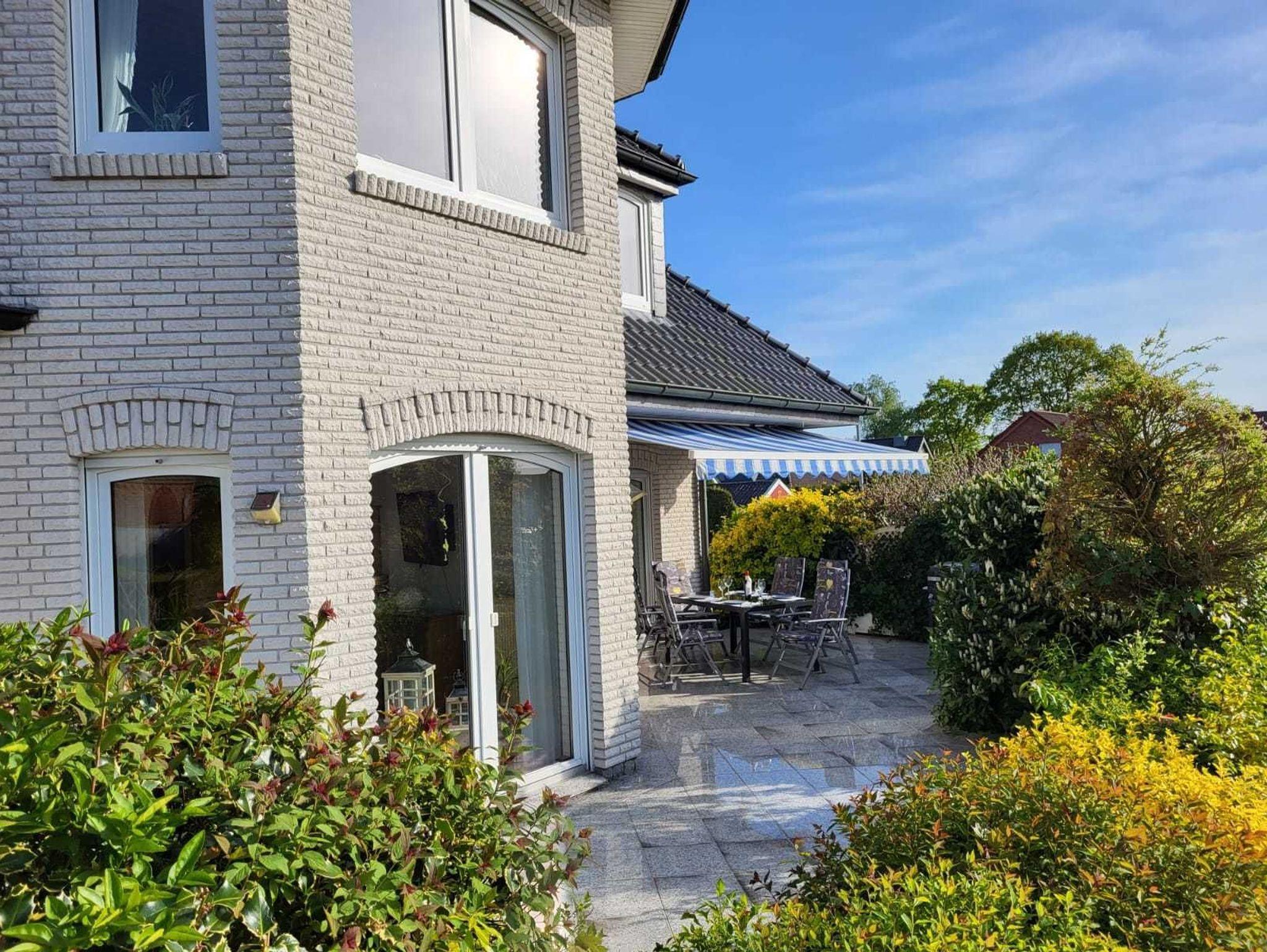 Im großen Garten können Sie auf der Terrasse entspannen. Dafür stehen zwei Gartenliegen mit Auflagen parat und als Sonnenschutz dient eine Markise. Ein Strandkorb steht Ihnen ebenfalls zur Verfügung.