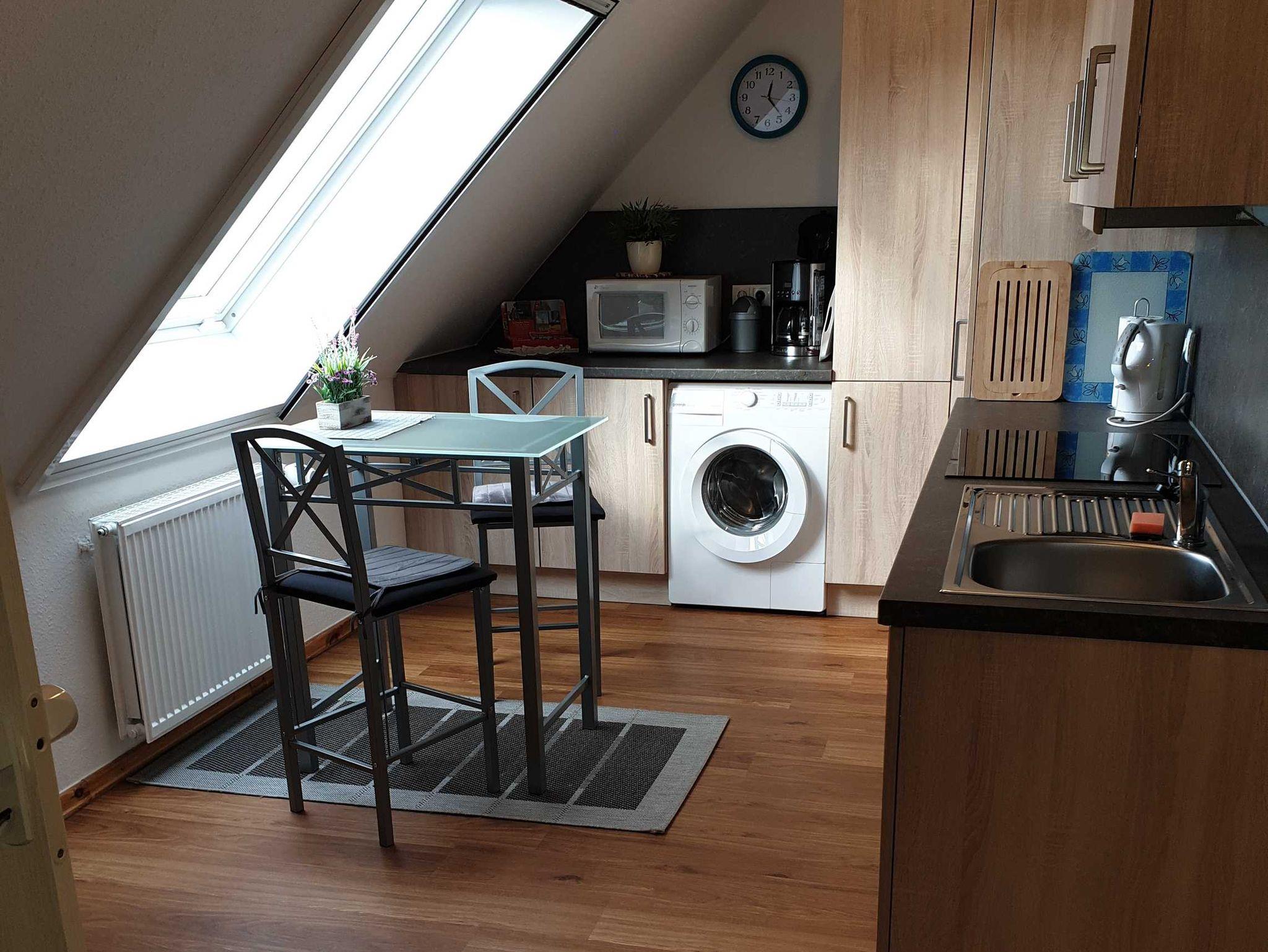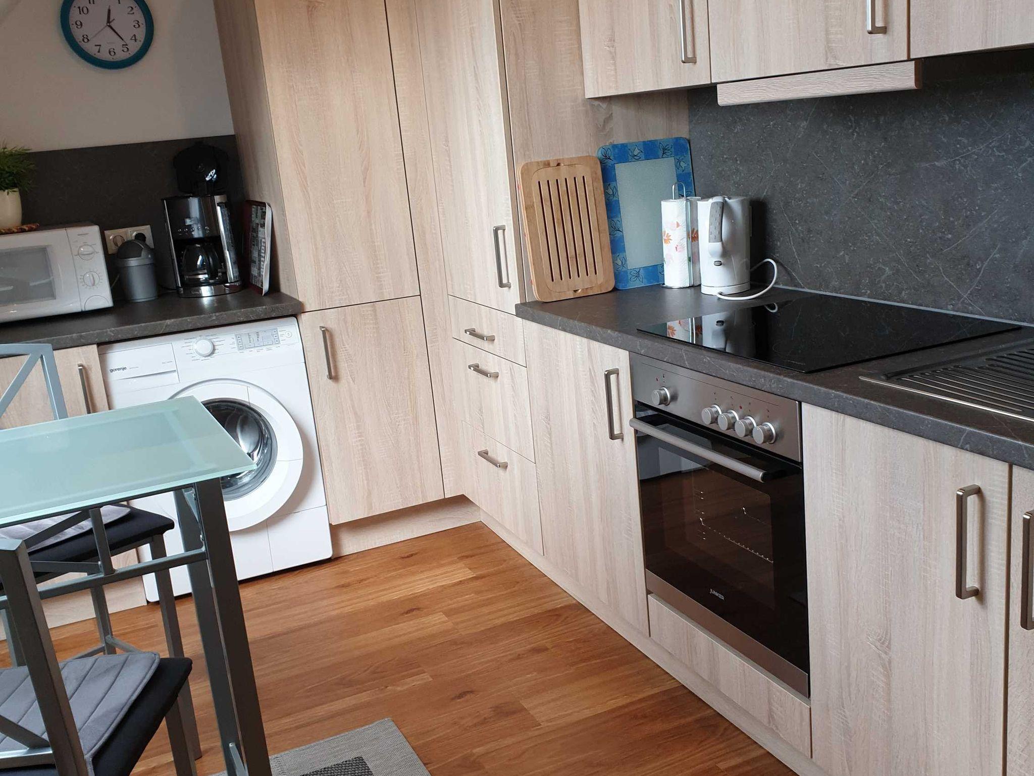 Wohnzimmer mit Kabel-TV, Telefon, Küchenzeile mit allen üblichen Haushaltsgeräten und Waschmaschine vorhanden. Dusche und WC, Bettwäsche und Handtücher sind inklusive.