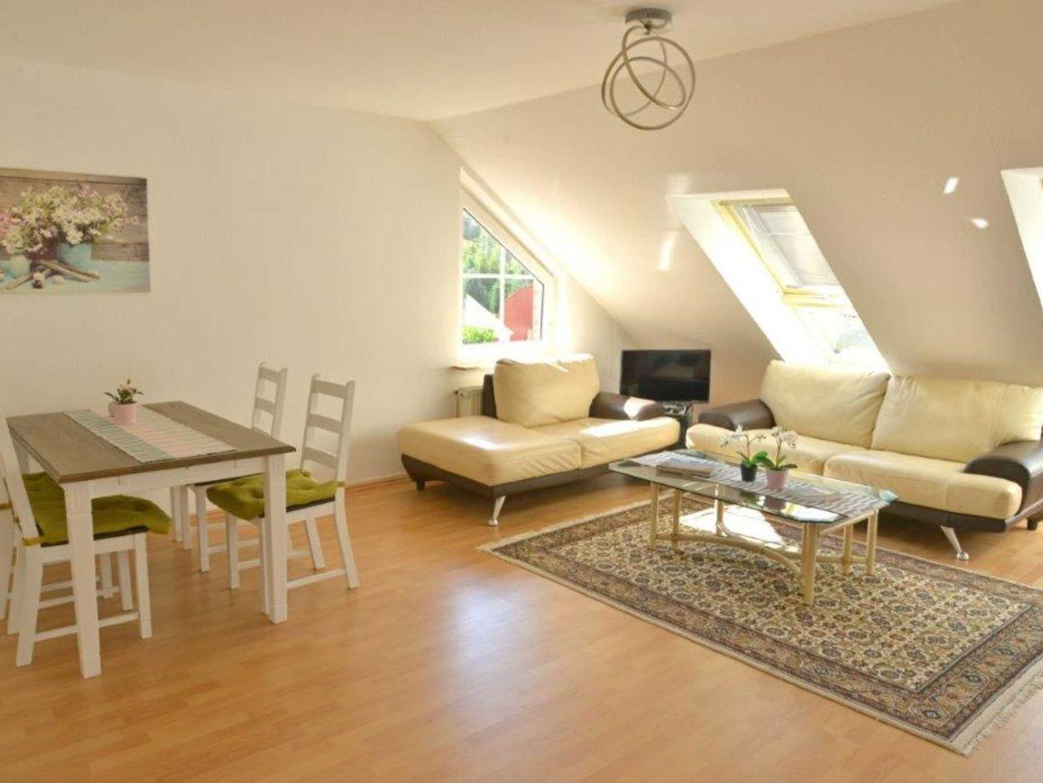 Gut ausgestatte, gemütliche Oberwohnung mit 2 Schlafzimmern. Bad mit Dusche, WC und Waschmaschine. Vollständig ausgestattete Küche und Wohnraum mit Essbereich.