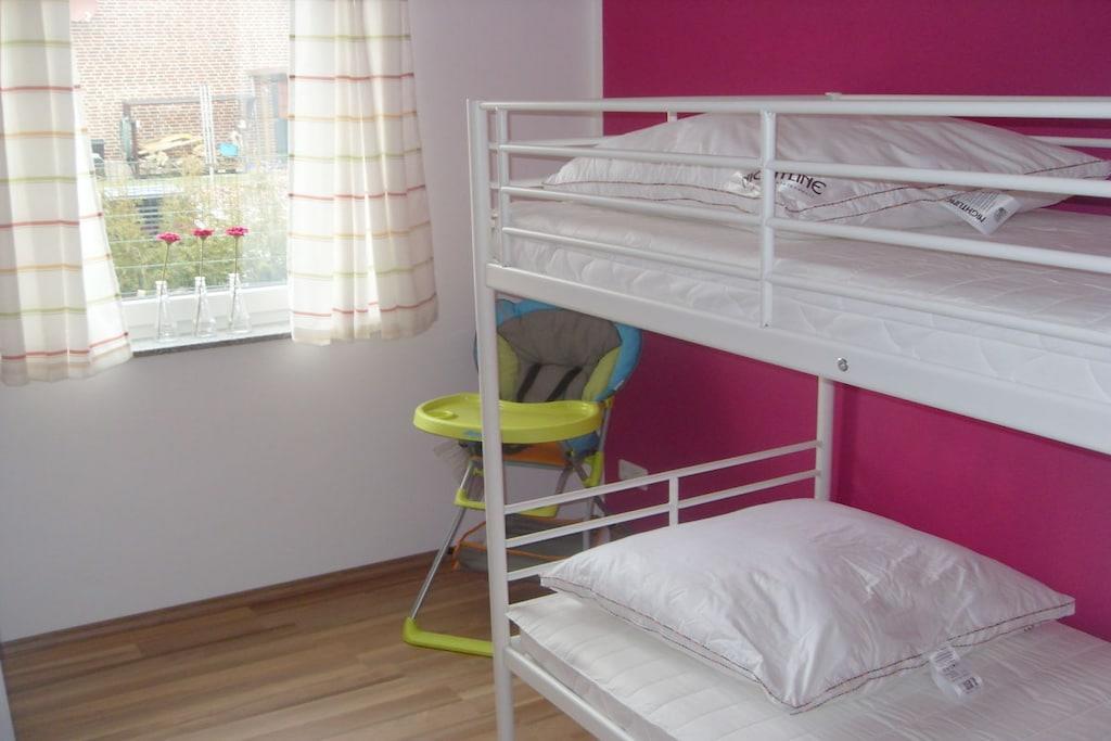Die im Oktober 2018 renovierte Ferienwohnung befindet sich im Erdgeschoss einer exklusiven Doppelhaushälfte (Neubau 2010). Es erwartet Sie eine 65qm große Ferienwohnung mit einer herrlichen Süd-Terrasse. Die 2 separaten Schlafzimmer sind mit einem Doppelbett für die Eltern, und einem Etagenbett für Ihre "Kleinen" ausgestattet. Für die ganz kleinen steht natürlich auch eine Wickelkommode bereit. Das modern eingerichtete Badezimmer ist mit ebenerdiger Dusche, Toilette & Waschbecken ausgestattet. Der geräumige, offen gestaltete, Wohn-/Küchenbereich ist das Herzstück dieser Wohnung. Hier können Sie auf ca. 35qm Fläche ausspannen oder nach Herzenslust schlemmen. Denn in der vollausgestatteten Küche mit u. a. Mikrowelle, Kühlschrank m. Gefrierfach, Herd m. Backofen u. Cerankochfeld, Spülmaschine wird das Kochen zum Vergnügen. Durch die zentrale, aber dennoch ruhige Lage bietet sich die Wohnung als Ausgangspunkt für Radtouren bestens an.