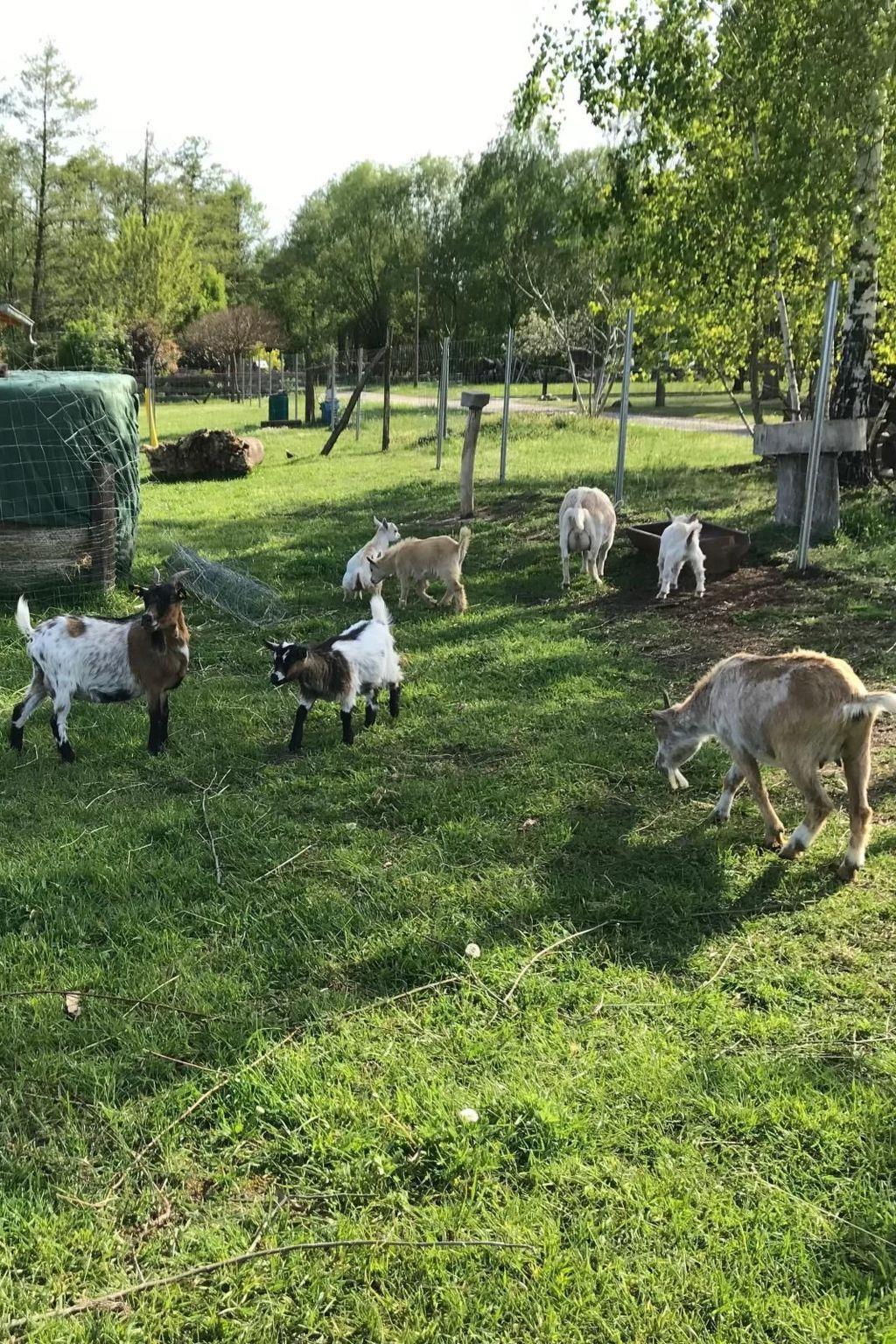 With a view of our goats and sheep or on the sun loungers right next to the river.