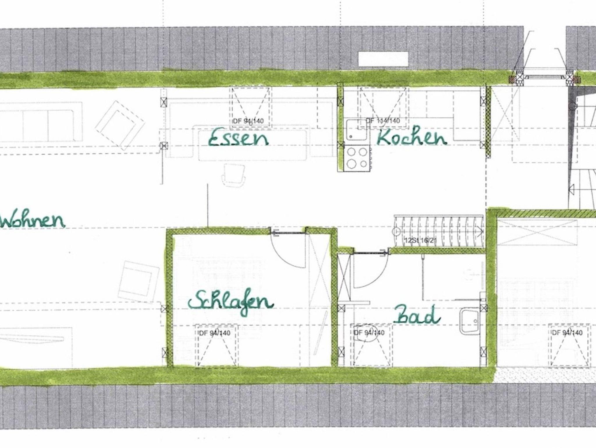 Auf circa 85 qm befinden sich hier ein offener Wohnbereich mit gut ausgestatteter Einbauküche, gemütlichem Essplatz, großzügiger Fernsehecke mit Couch (Schlaffunktion, Liegefläche 130 cm x 200 cm), Sessel und großem Flachbild-TV sowie einem erhöhten, offenenSchlafbereich mit einem Doppelbett (180 cm x 200 cm);