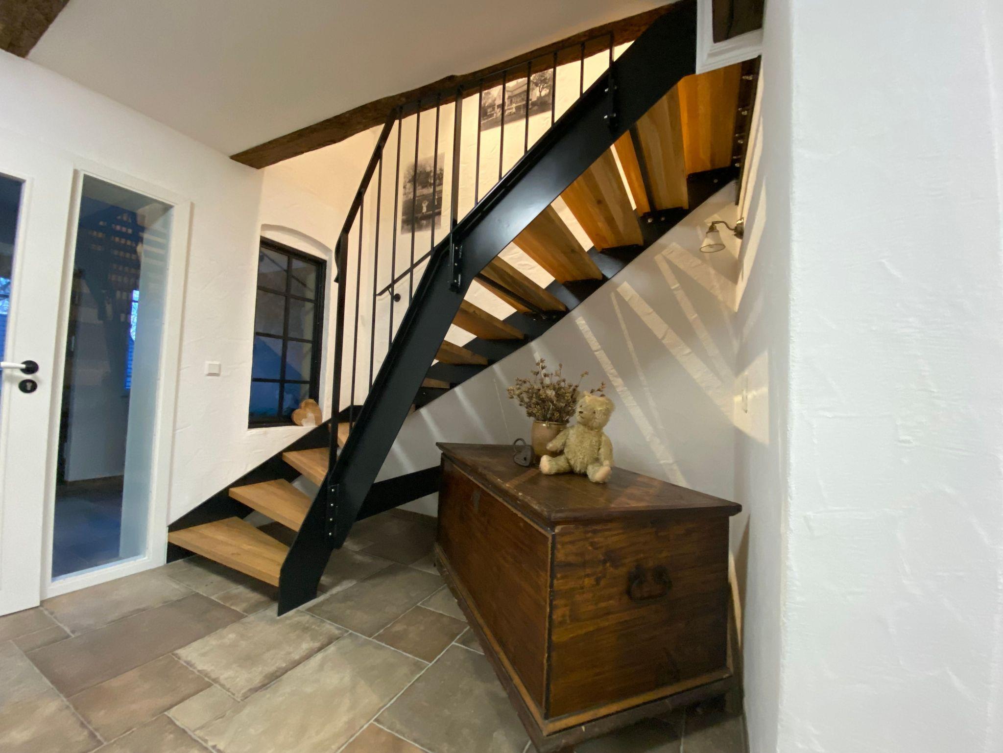 Wunderschöne Wohnung mit Dachschrägen und viel urigem Gebälk im ersten Obergeschoss der Alten Scheune auf dem Hof Stenzinger, erreichbar über einen separaten Eingang mit geräumigem Flur und eigener Treppe.