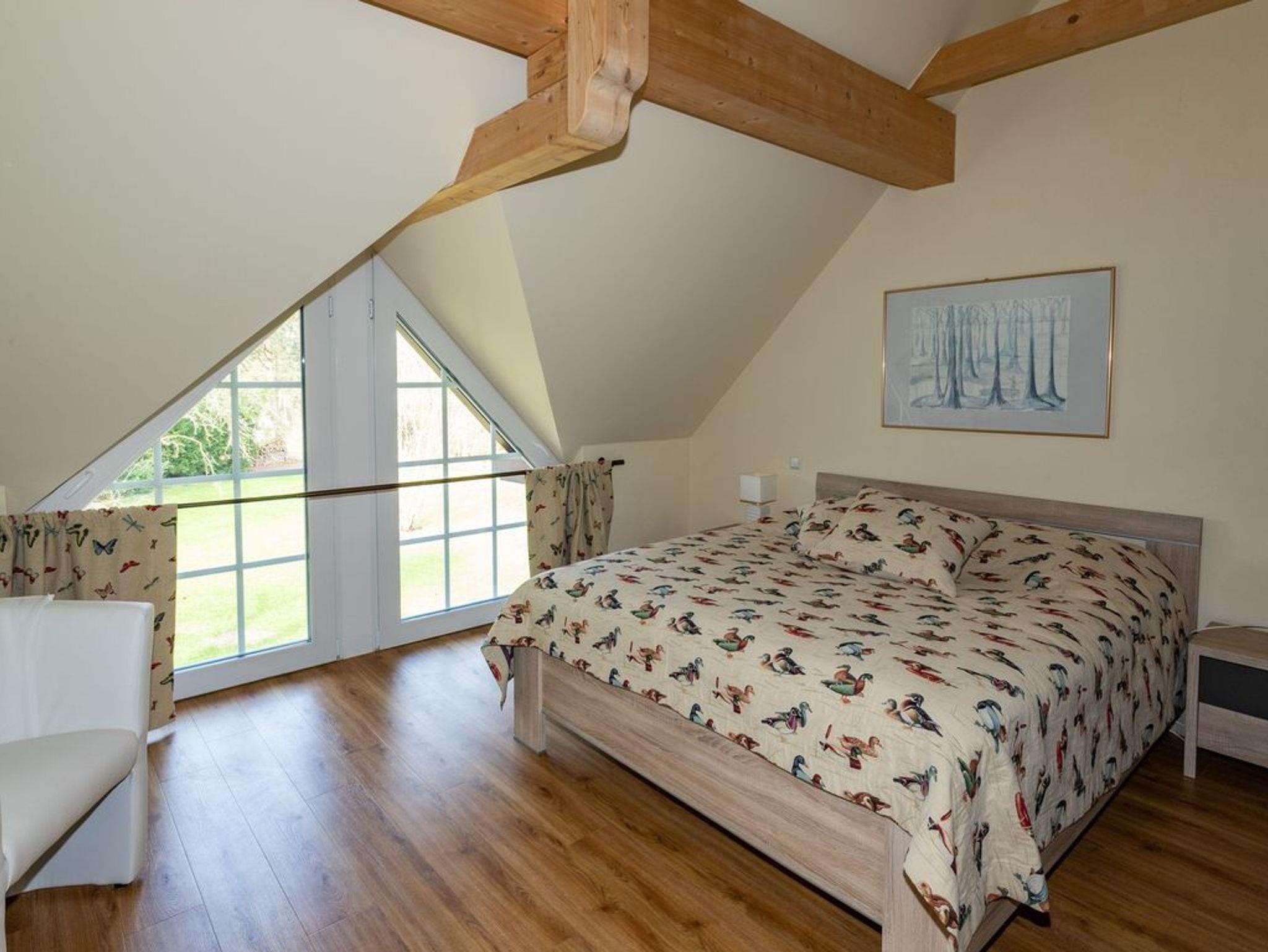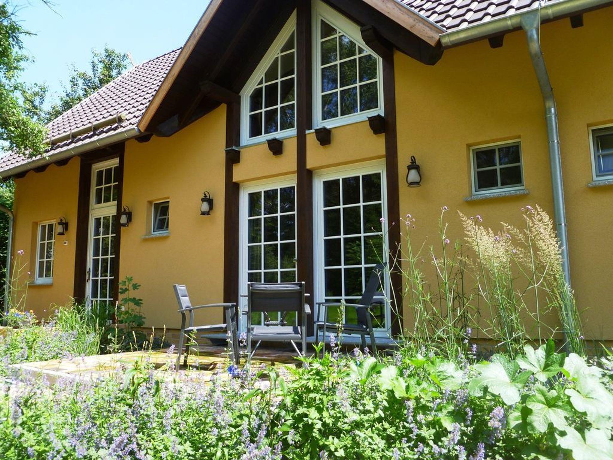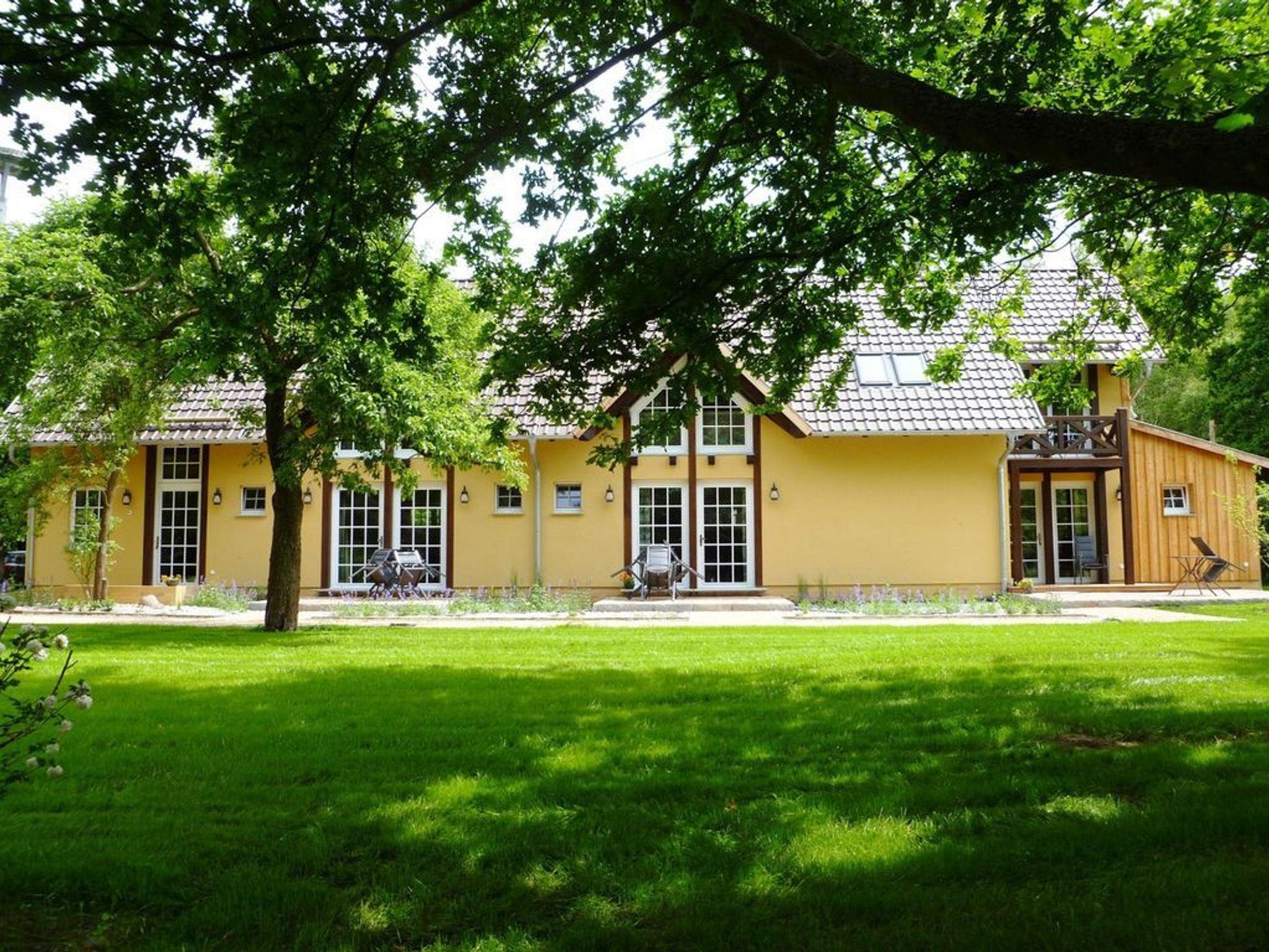 Der Froschkönig Ferienhaus und Ferienwohnungen liegt auf einem gepflegten Grundstück mit großem Garten und ist für Gäste ab 12 Jahren buchbar. Zur Anlage gehören ein kleines Ferienhaus und ein Appartementhaus mit vier Ferienwohnungen. Im Ferienhaus befinden sich im EG ein Wohnraum mit Pantryküche und DU/WC. Über eine ausziehbare Treppe gelangt man in das Dachgeschoss zum Schlafraum mit zwei getrennt stehenden Betten. Das Appartementhaus mit vier Ferienwohnungen ist hochwertig eingerichtet. Im EG der Ferienwohnungen befinden sich je der Wohn- und Küchenbereich sowie das Bad mit DU/WC. In den Ferienwohnungen 1-3 ist der Schlafbereich auf der Galerie untergebracht. In der Ferienwohnung 4 liegt der separate Schlafraum im OG und dort befindet sich auch ein zusätzliches Bad. Die Ferienwohnung 1 ist im EG barrierefrei. Eine Grillmöglichkeit steht den Gästen auf Anfrage zur Verfügung. Bitte um vorherige Absprache mit dem Gastgeber.