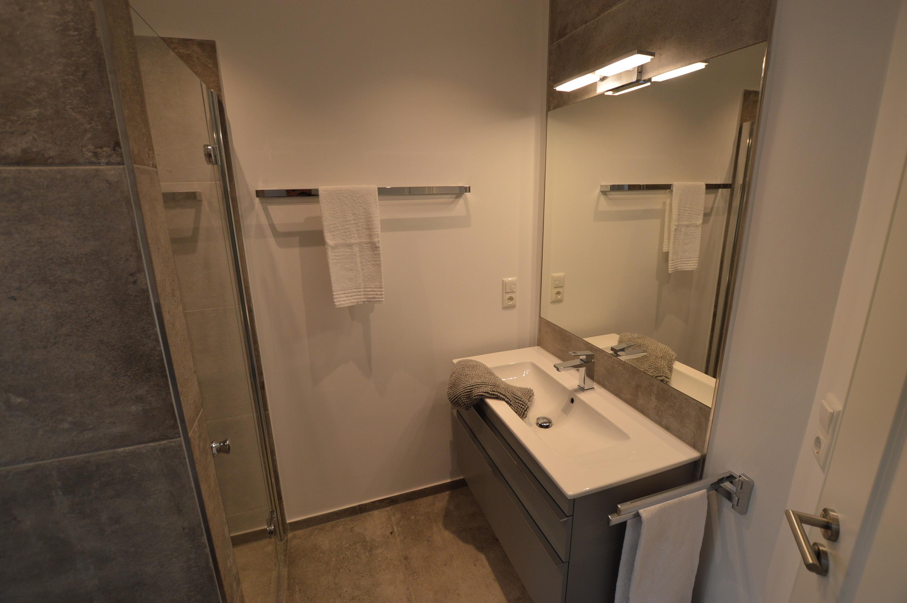 Ihre Sauna ist durch Ihr ansprechendes Duschbad erreichbar.