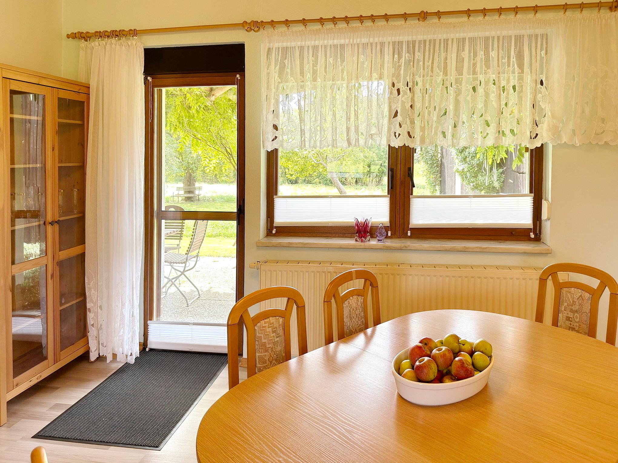 Die separate Küche ist komplett ausgestattet für unkompliziertes Kochen, am Esstisch genießt ihr in Ruhe gemeinsame Zeit. Draußen warten Terrasse und Garten – Frühstück in der Sonne, später den Abend ausklingen lassen, während das Wasser leise vorbeizieht.