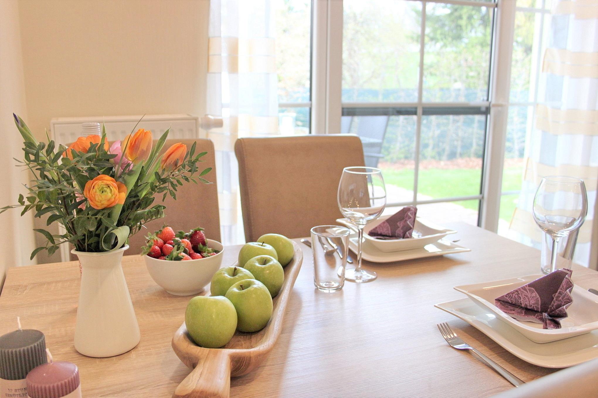Diese ebenerdige Ferienwohnung wird Ihnen einen schönen erholsamen Urlaub bereiten. Sie ist hell und freundlich eingerichtet. Sie haben eine moderne Wohn- und Küchenkombination mit einem Esstisch und einer gemütlichen Couchecke. Die Terrasse erreichen Sie vom Wohnzimmer aus. Das kleine Schlafzimmer, kann als Kinderzimmer sehr gut genutzt werden. Die Couch können Sie als Bett ca. (140x200 cm) umfunktionieren. Das angrenzende Schlafzimmer ist geräumig mit einem Schrank und Doppelbett (160x200 cm ) ausgestattet. In jedem Raum befindet sich ein Flachbild- TV.
