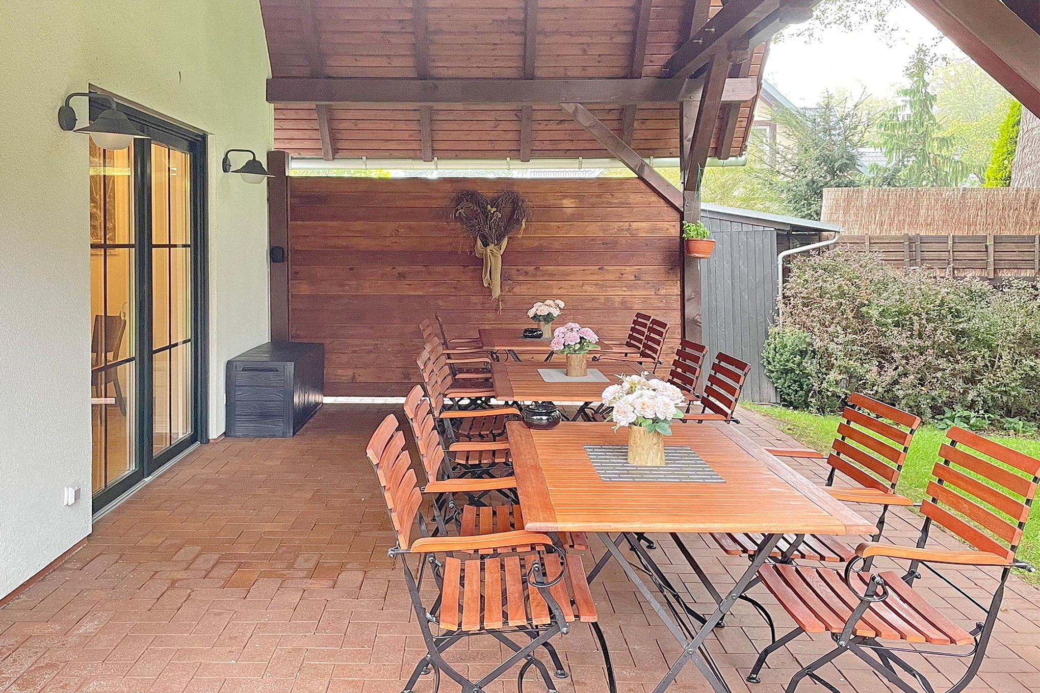 Das Haus liegt direkt am Wasser. Gerne können Sie eigene Boote mitbringen und vom Grundstück aus gleich lospaddeln. Der nächste Hafen ist fußläufig nach ca. 300 m erreichbar.