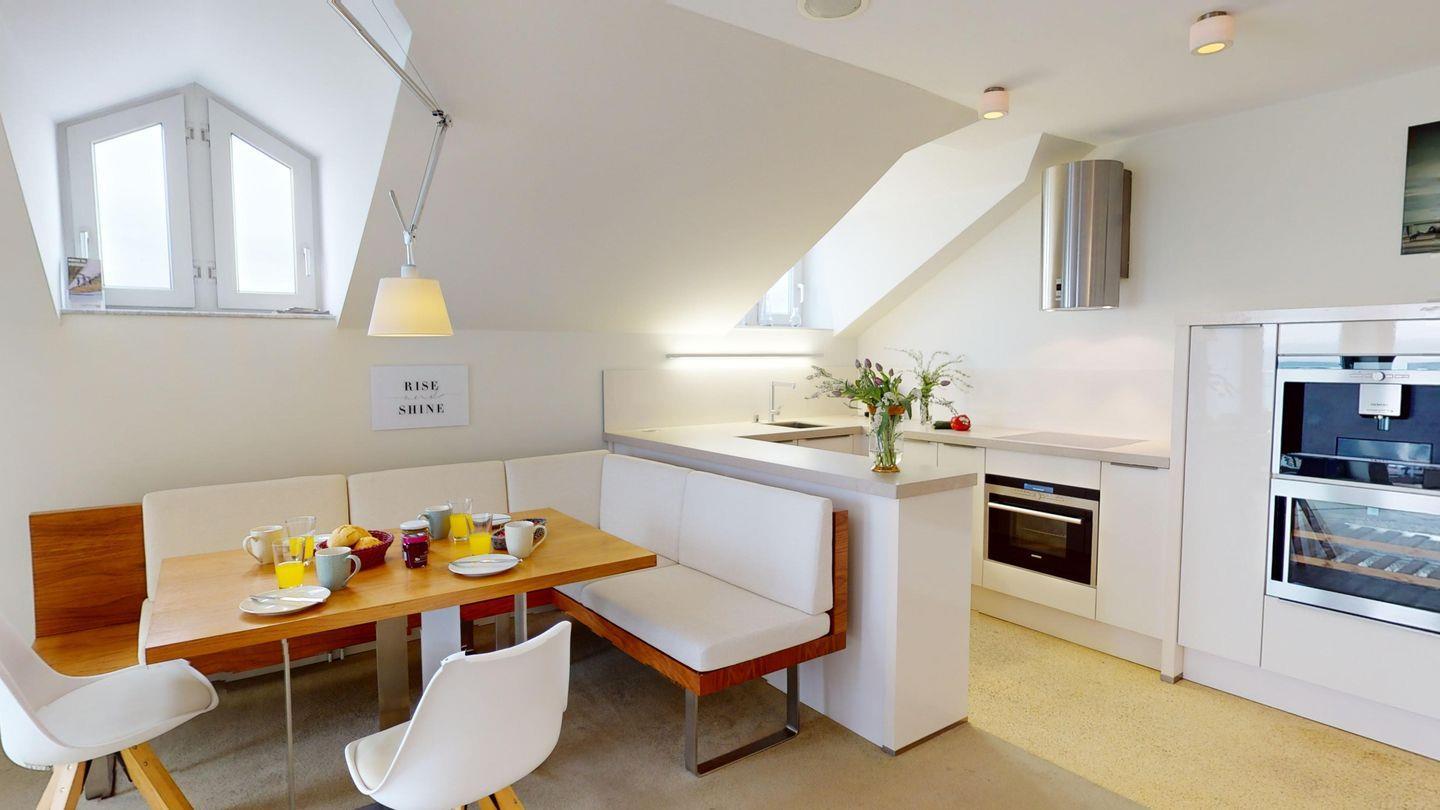 Die stilvoll eingerichtete Wohnung bietet großzügigen Platz für bis zu vier Personen und überzeugt mit einem hellen Wohnbereich, einer offenen, voll ausgestatteten Küche und einem gemütlichen Essplatz – perfekt für gesellige Stunden. Zwei separate Schlafzimmer – eines mit Doppelbett, das andere mit zwei Einzelbetten – sorgen für erholsame Nächte. Das moderne Duschbad rundet das Wohlfühlpaket ab.