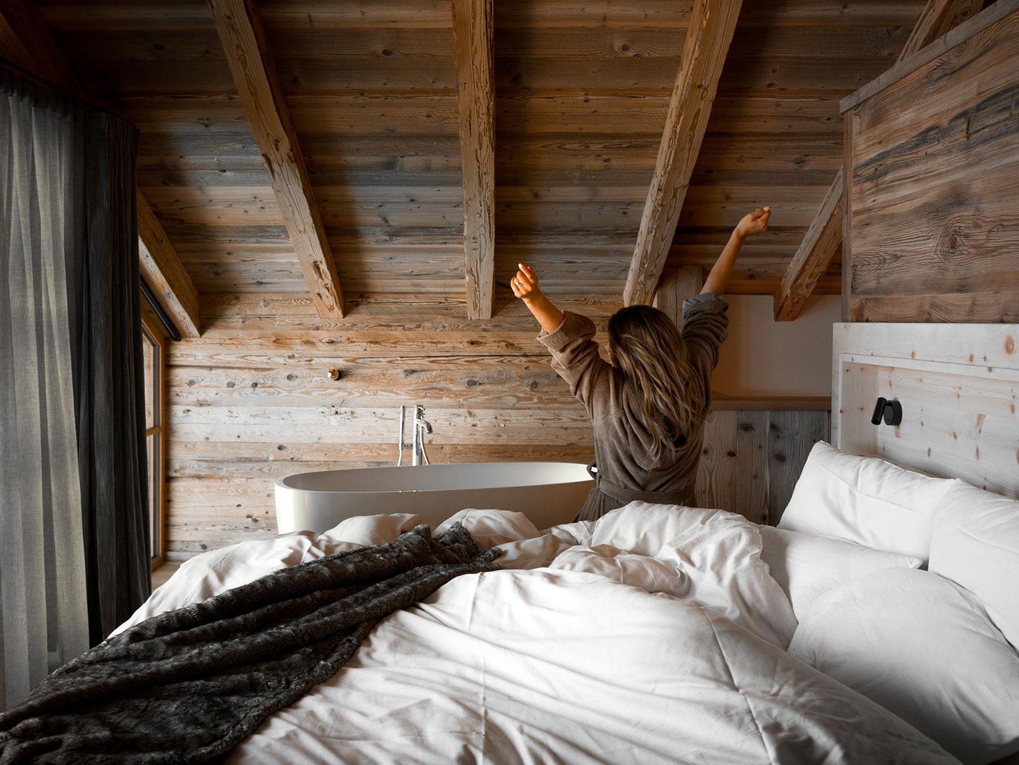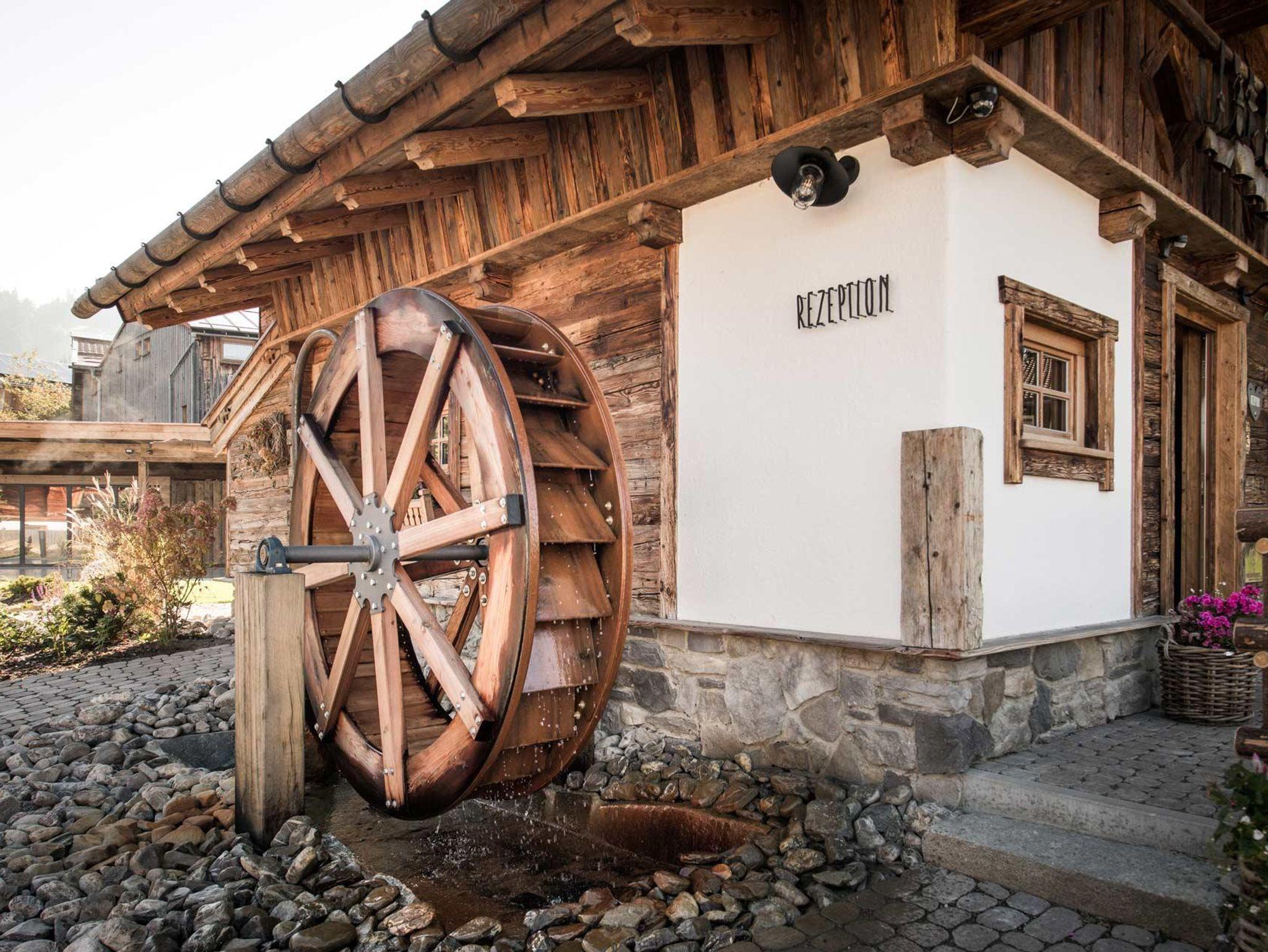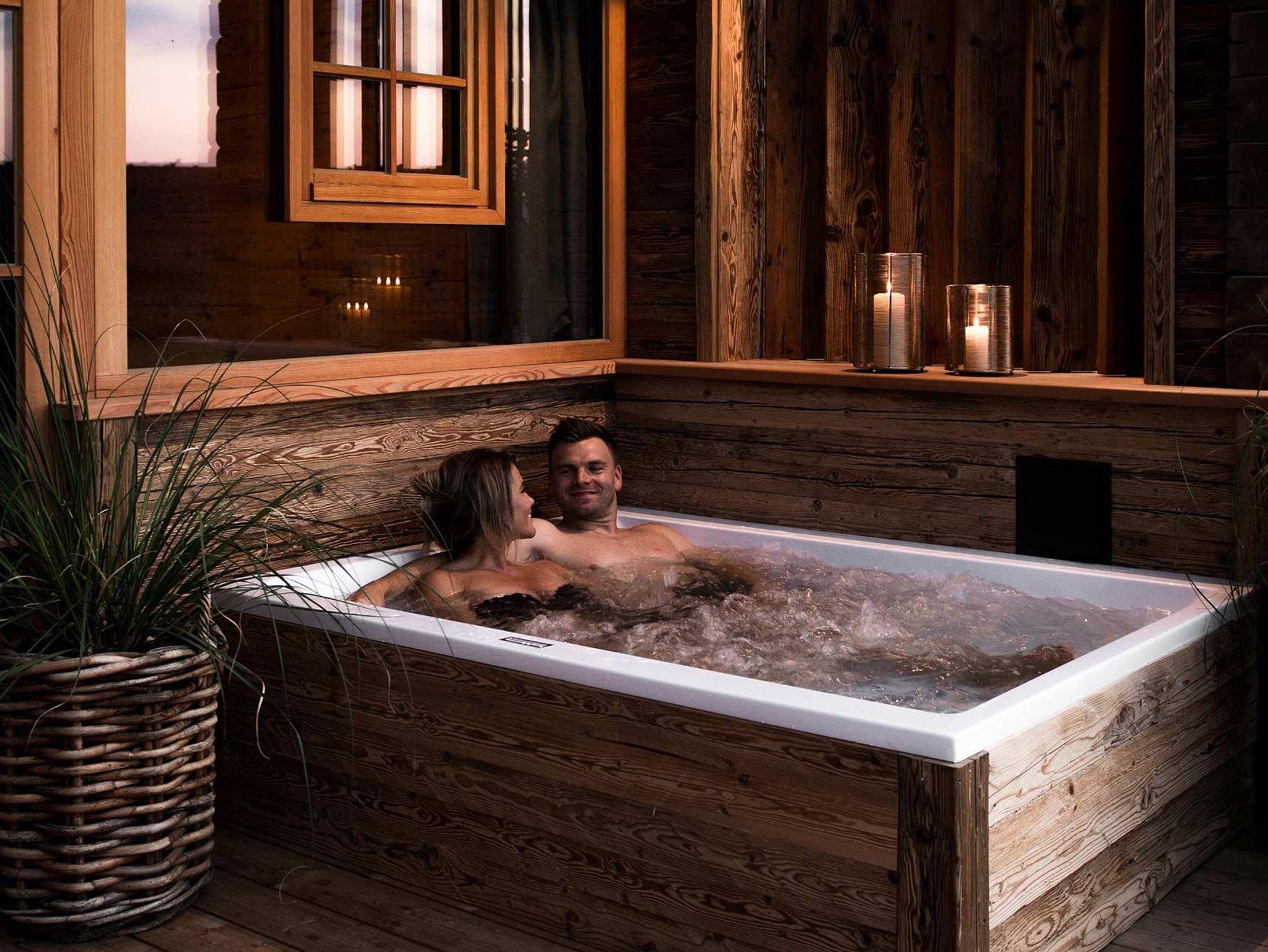Alle neuen Chalets mit Alpzitt-Besonderheiten und eigenem Whirlpool auf der Terrasse – plus Pool, Naturbadesee & neues Spa-Gebäude.