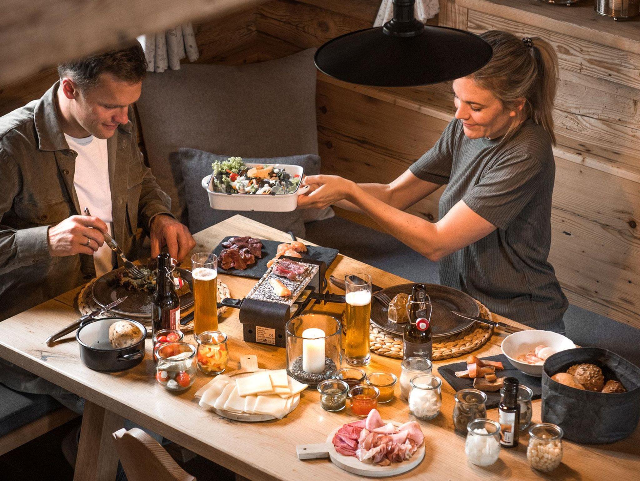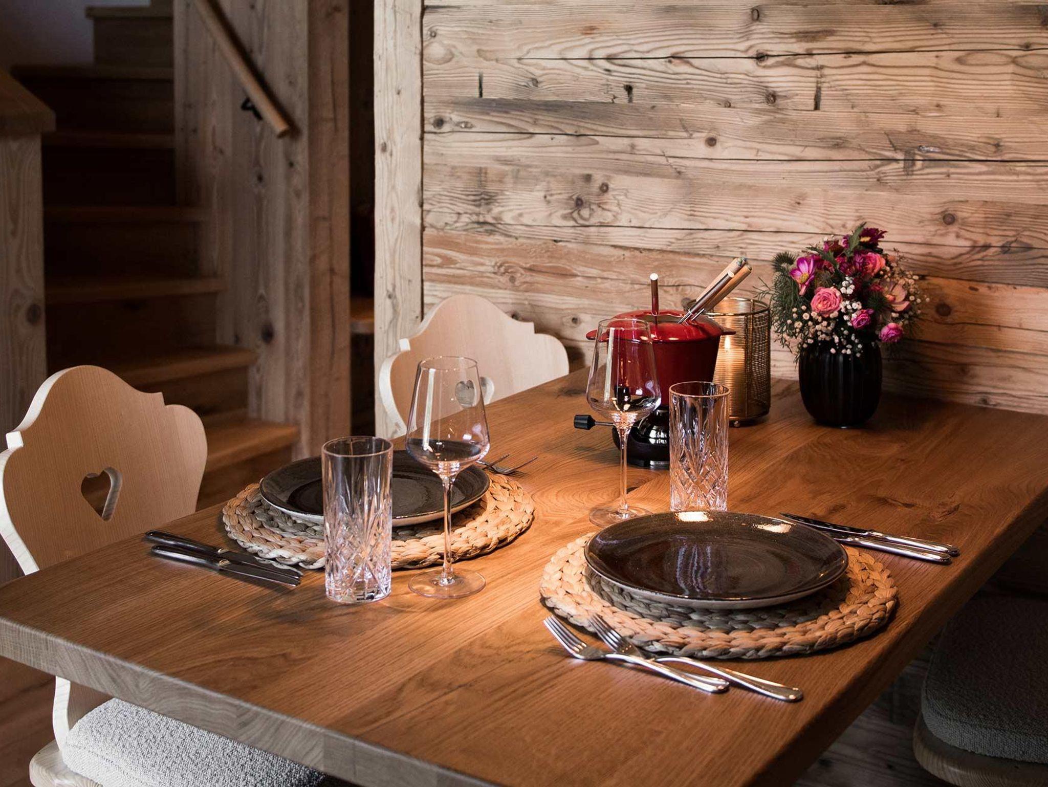 Im exklusiven Chalet-Appartement „s´huimelég“ bieten wir Ihnen 60 m² Luxus im Alphüttenstil für 2 Personen. Wohn- und Essbereich mit grosszügiger Südverglasung, gemütlicher Lounge-Ecke, Sat-Flat-TV. Küche mit Espressomaschine, Toaster, Wasserkocher, Eierkocher, Herd und Backofen, Geschirrspüler, Kühlschrank, Minibar/Weinschrank. Bad/Wellnessbereich mit Sauna und Regendusche. Separates WC. Schlafzimmer mit wohlduftendem Zirben-Kuschelbett.