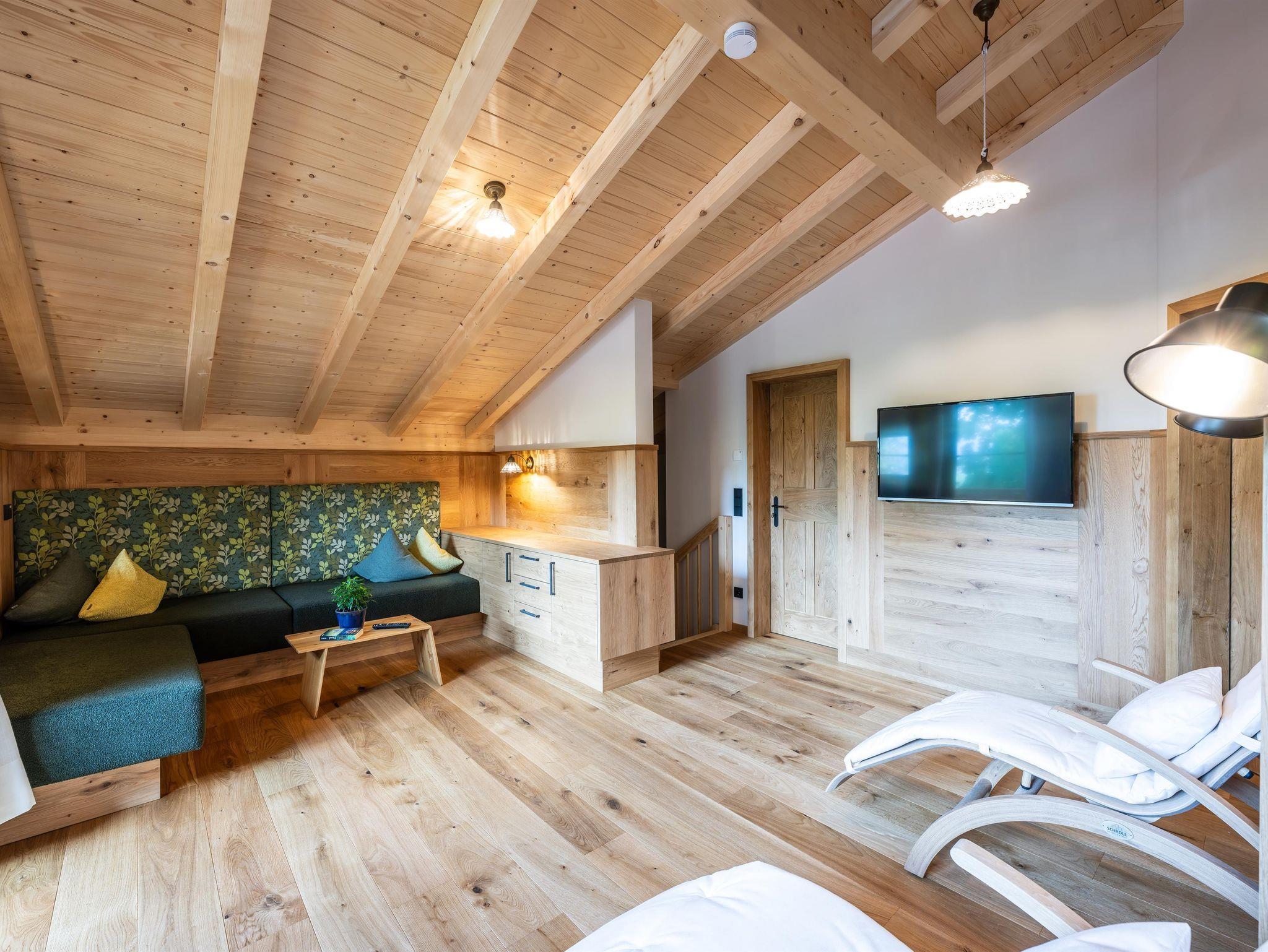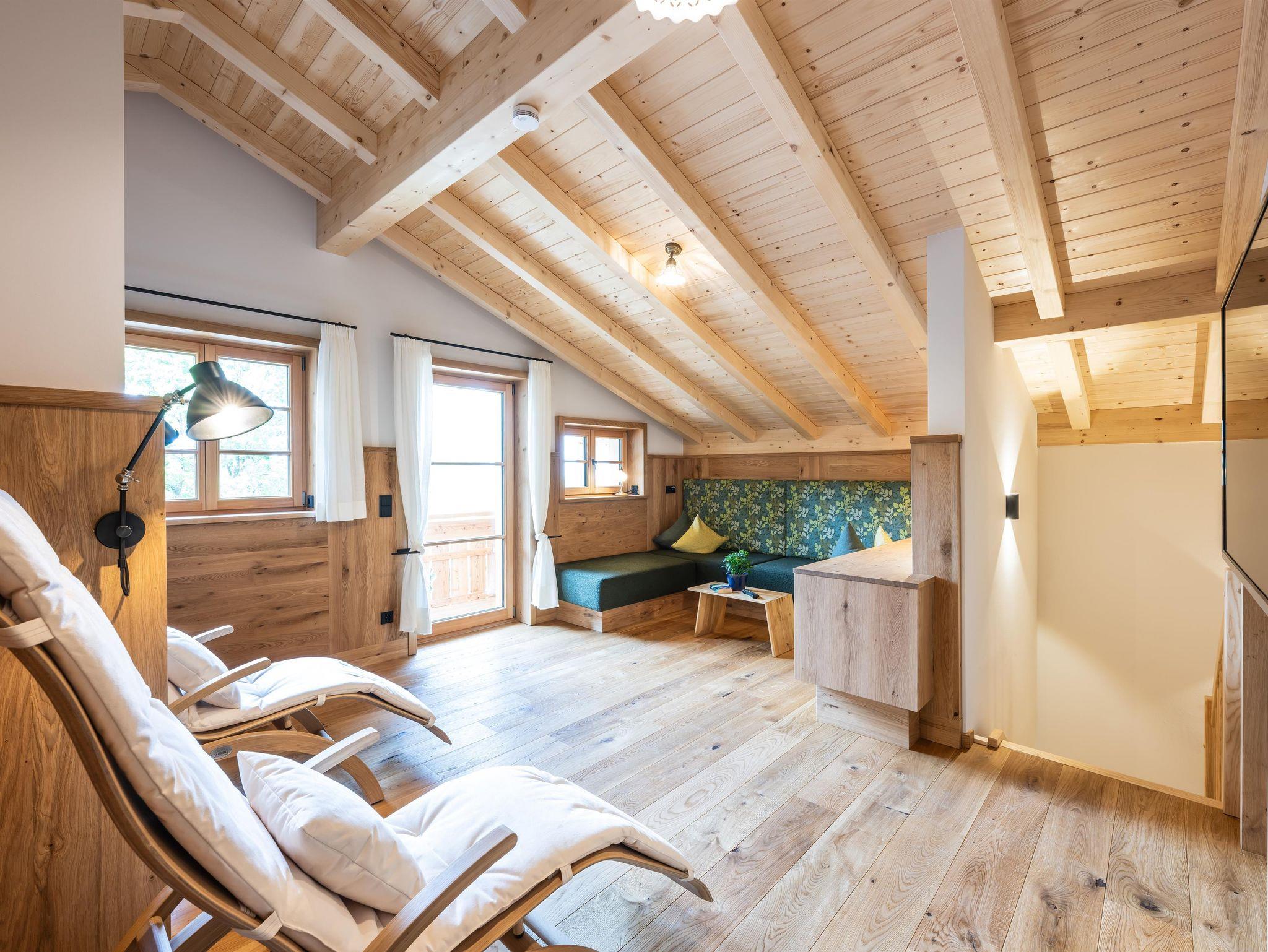 Mit über 100qm individuellem Refugium und hochwertigsten Naturmaterialalien wie Eichenholzböden, offenem Dachgebälk und Massivholzküche, sind die Chalets ideal für romantische Auszeiten oder einen erholsamen Familienurlaub, bei dem jeder seinen Rückzugsort finde und genießen darf.