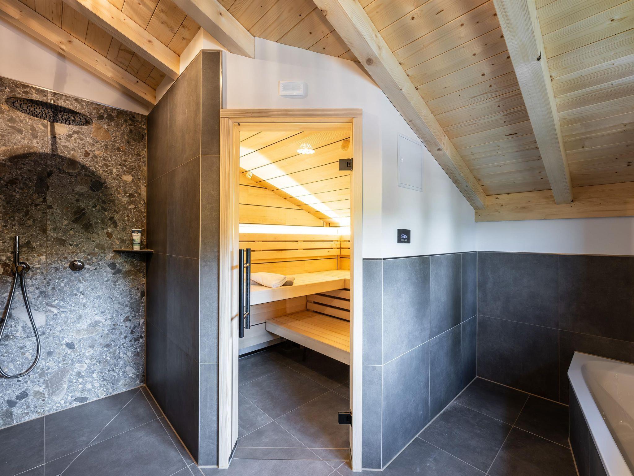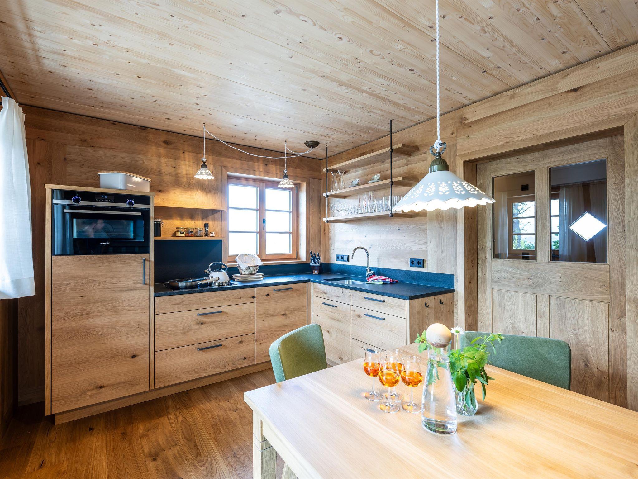Alle Chalets sind ausgestattet mit einer hochwertigen Echtholzküche, die keine Wünsche offen lässt: Backofen & Mikrowelle, Geschirrspüler inkl. Tabs, Kühlschrank mit Gefrierfach, Wasserkessel inkl. Kaffee – und Teefilter, Wilde Gewürze, Spülmittel und Geschirrtücher. Einem Bad mit Regendusche, Handtuchtrockner, Kosmetikspiegel, Fön, Handtücher, Saunatücher & Bademäntel. Chalet Tanne und Eiche verfügen über eine eigene Saune. Alle Gäste im Chalet Lärche dürfen die Sauna im Haupthaus nutzen.