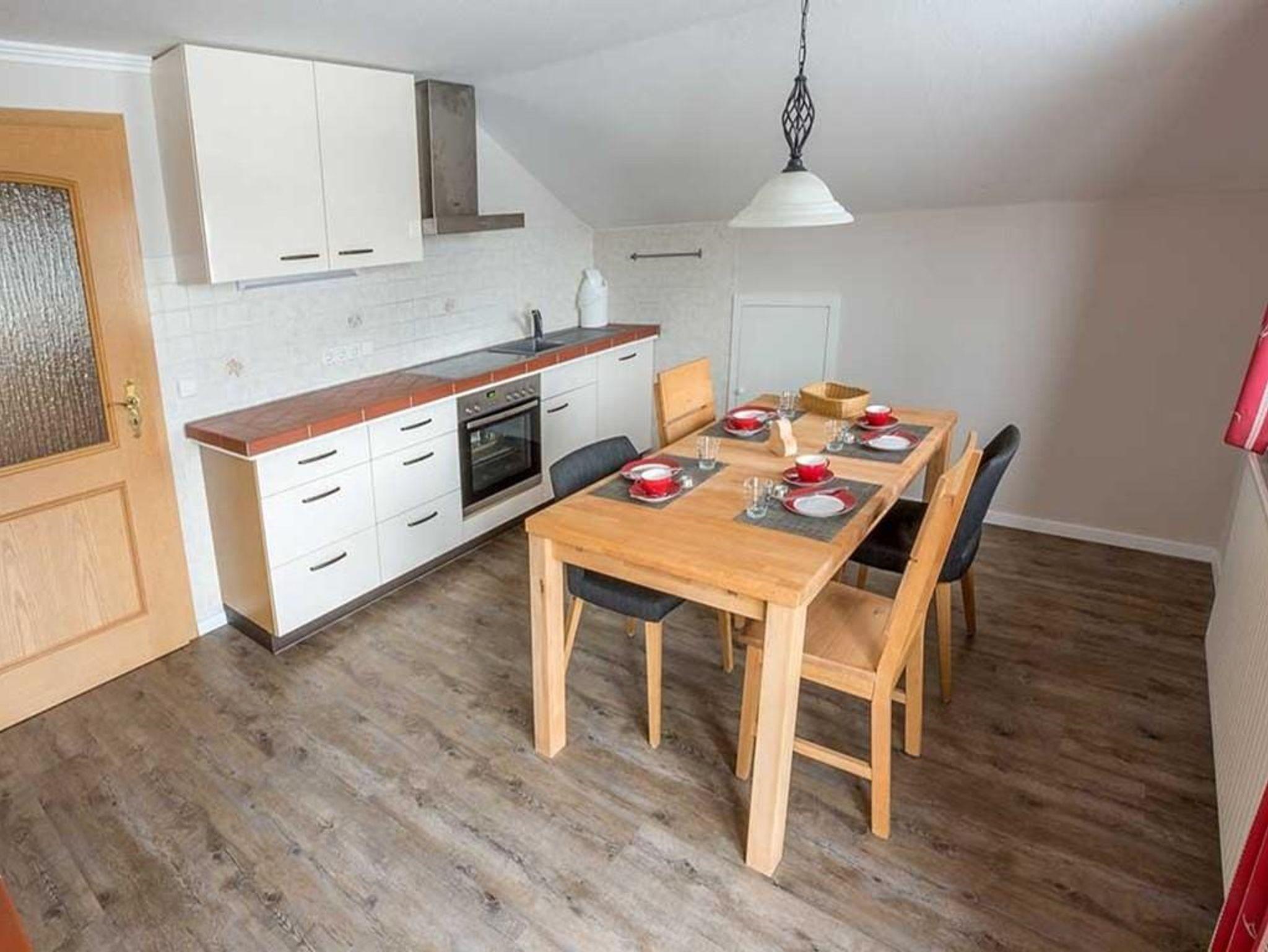 Gipfelblick pur ist in der ca. 80 qm großen Wohnung unterm Dach des Bauernhauses gewiss. Ein Wohn- und Schlafzimmer mit Tür zum Balkon, ein Schlafzimmer seperat, eine Wohnküche mit Ausgang zum Balkon, neues Dusch-und Wannenbad, Gäste-WC seperat.