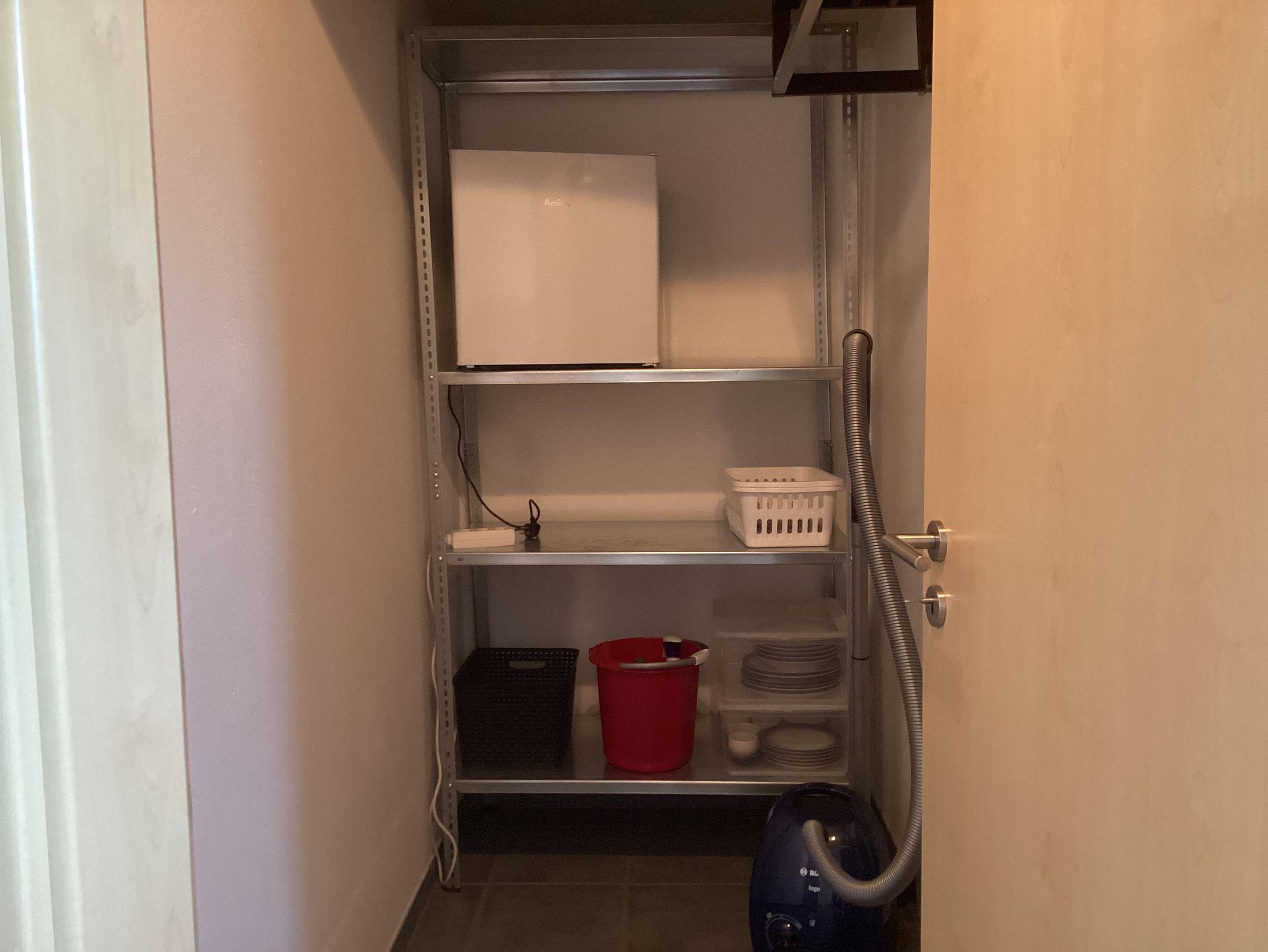 Außerhalb der Wohnung befindet sich die Graderobe und ein Abstellraum mit einem kleinen Gerfierschrank.