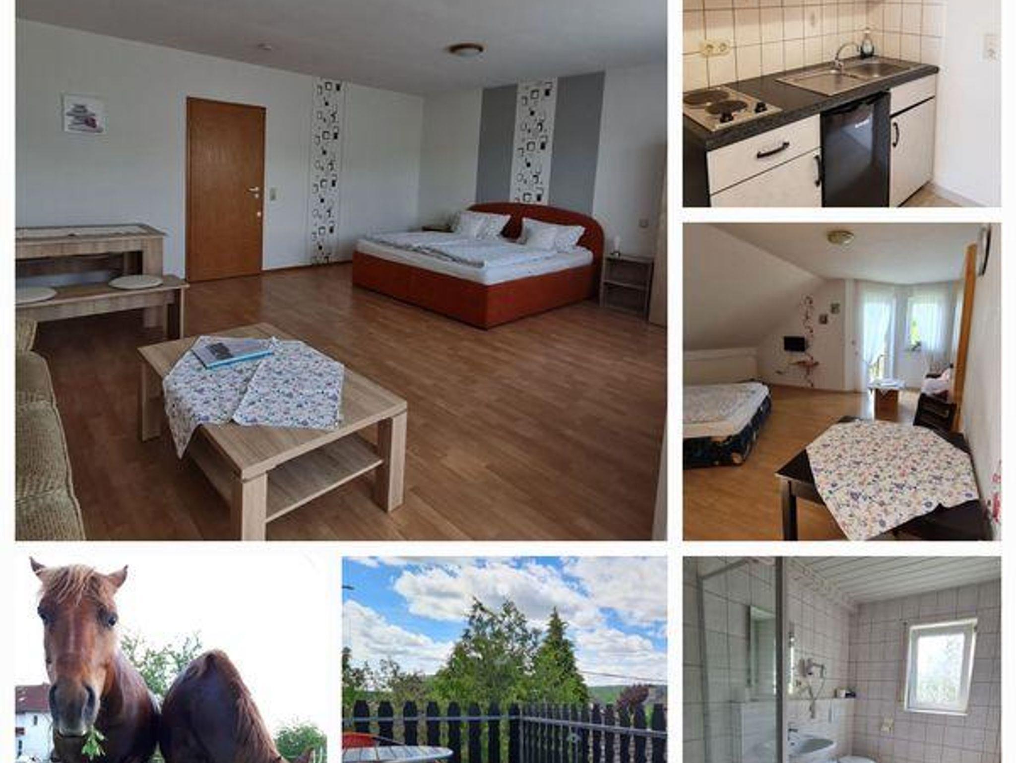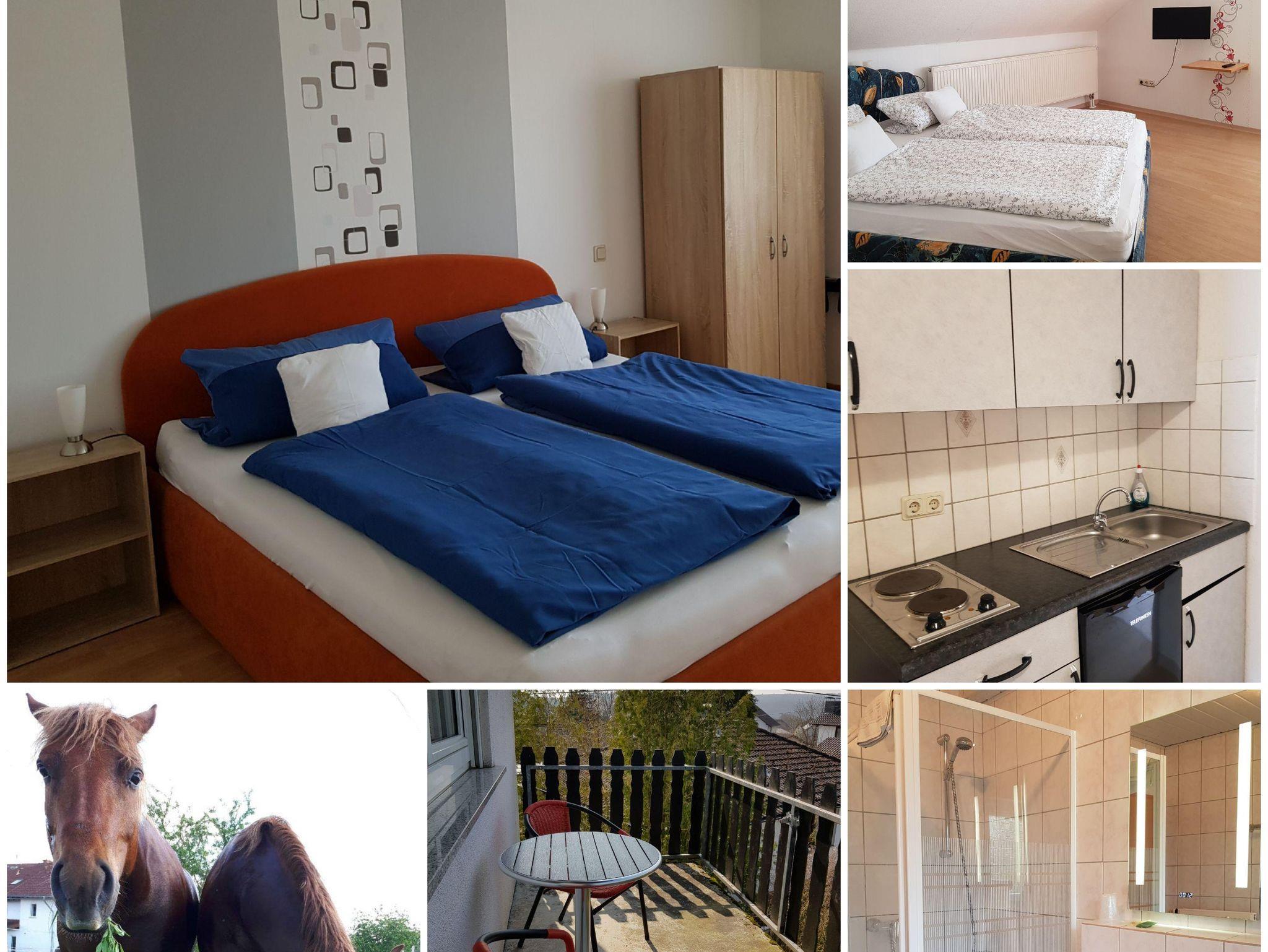 Doppelschlafzimmer, Wohn-/Schlafzimmer (2 Einzelbetten), Sitzgelegenheit, TV, Radio, Küche mit Essecke, Badewanne/WC.