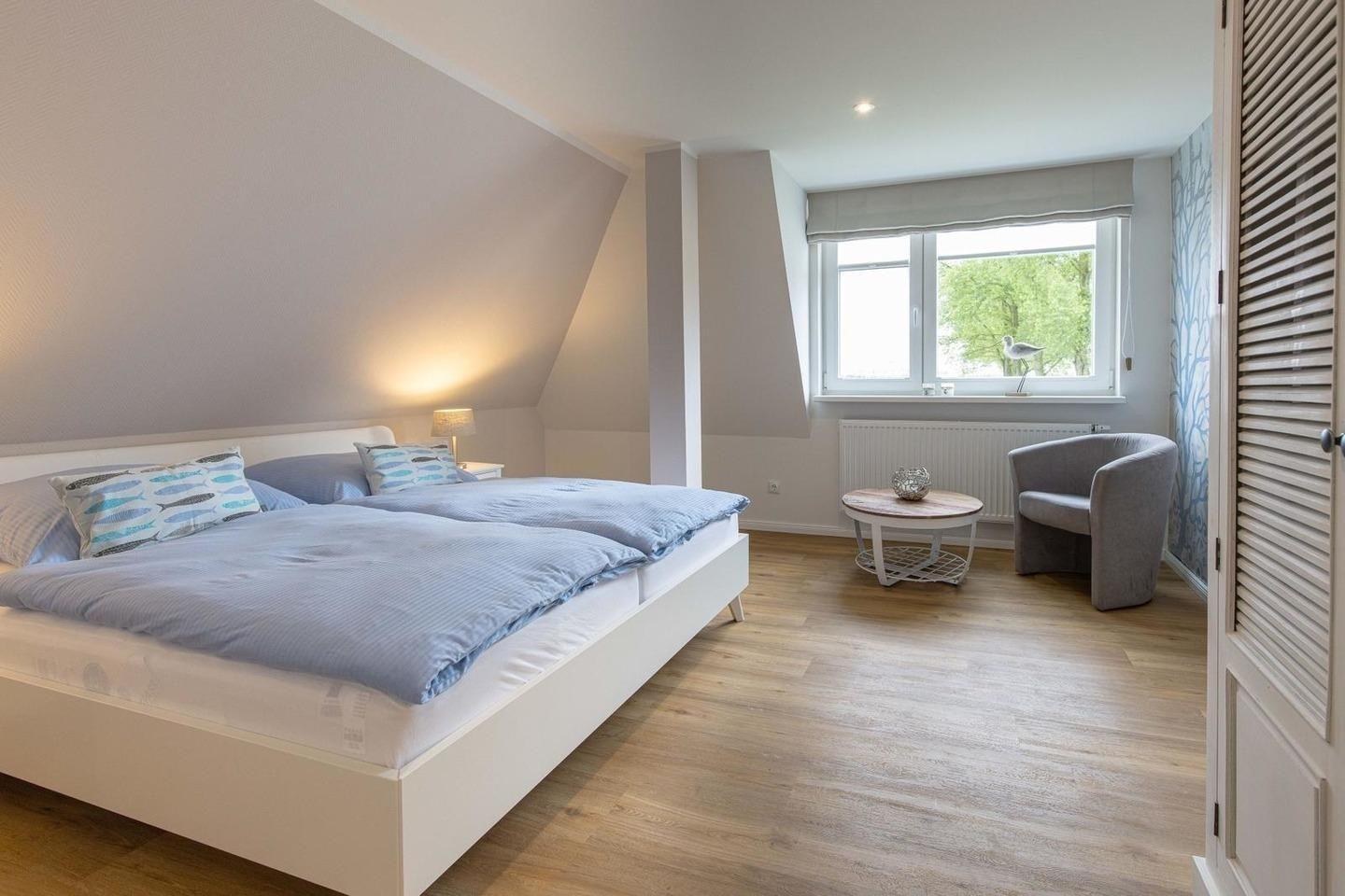 Unsere neue, moderne Wohnung erwartet Sie mit hochwertiger Wohnlichkeit. Die Wohnung liegt im OG eines Einfamilienhauses mit Parkplatz am Haus. Sie verfügt über 2 Schlafräume mit Doppelbetten (je 180cm x 200 cm), ein Wohnzimmer mit Blick auf den Binnensee, eine separate Küche und Duschbad. Hinterm Haus befindet sich ein Garten zum verweilen mit Sonnenterrasse und Grillmöglichkeit. Alle Verbrauchskosten und der W-Lan Zugang sind bereits im Mietpreis enthalten. Die Betten werden bezogen und Handtücher werden auch gestellt.