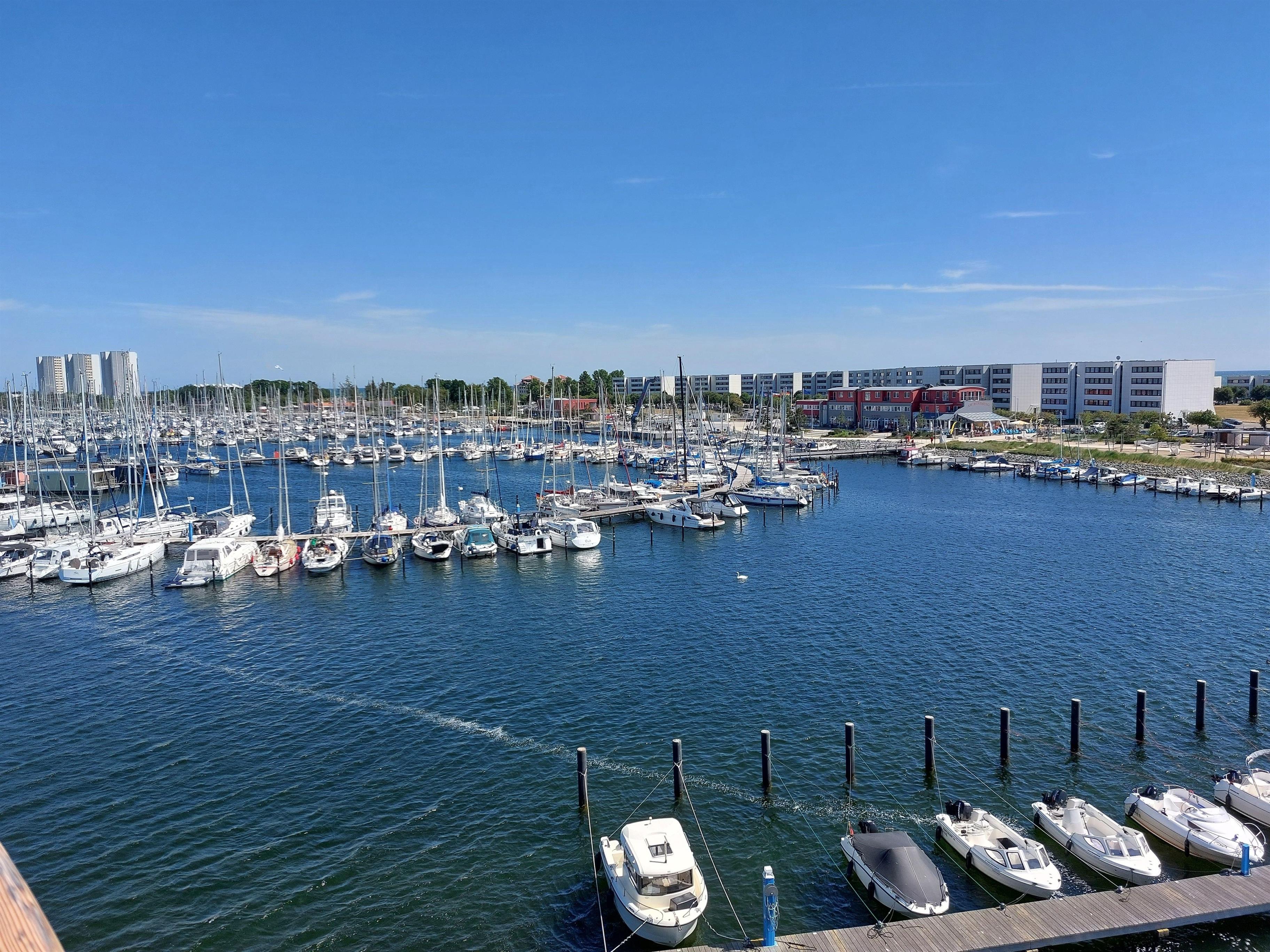- Direkter Blick auf die Ostsee und die ein- und ausfahrenden Schiffe