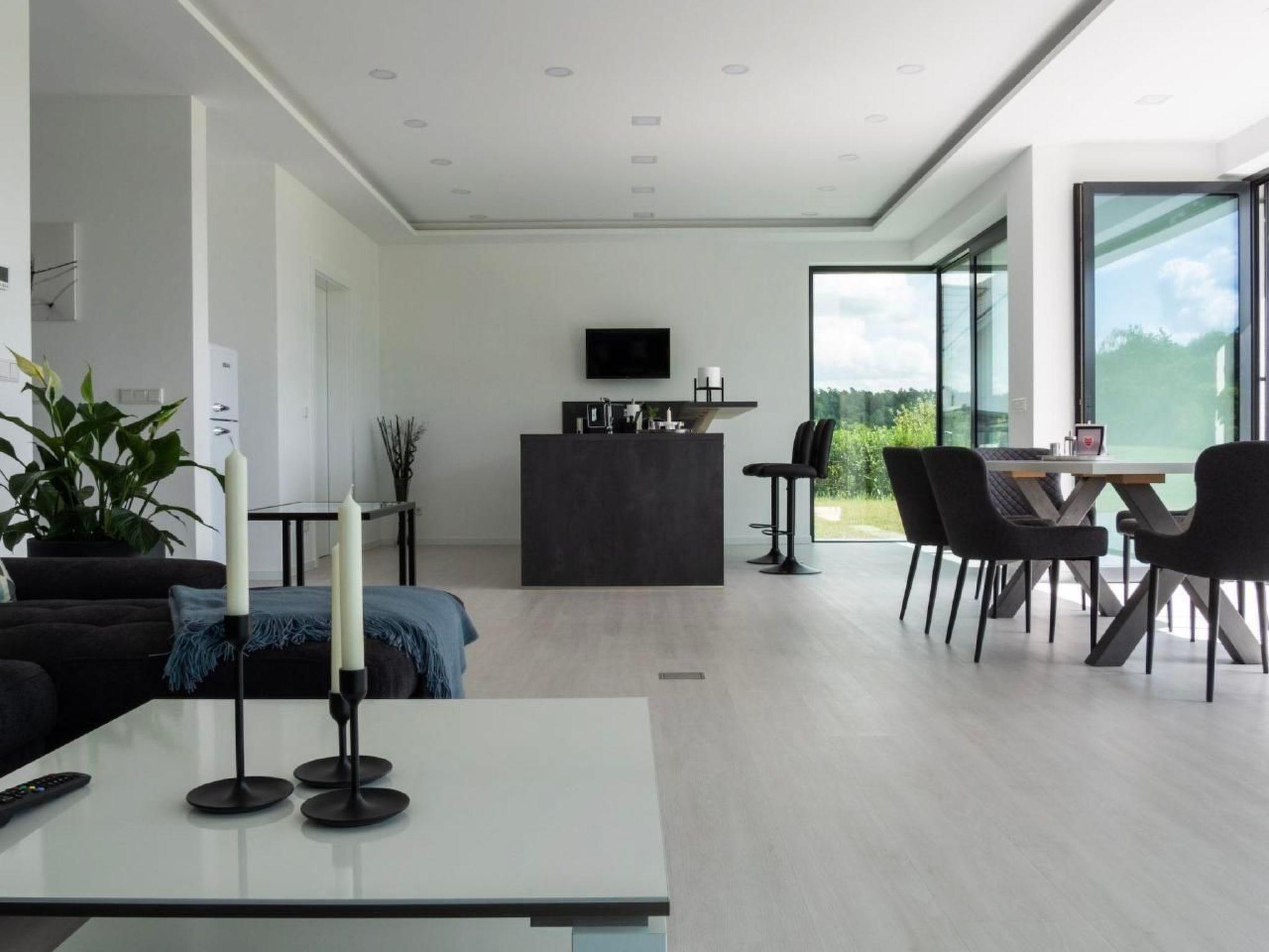 In the barrier-free flat on the ground floor, a generous living space of 138 m2 awaits you, equipped with an impressive, modern and cosily furnished living area. The open-plan kitchen with dining area invites you to cook and socialise together. Three bedrooms with box-spring beds, two bedrooms with 180x200 cm and one bedroom with 140x200 cm, a flat-screen TV and a comfortable bathroom with rain shower and a separate guest WC ensure ultimate comfort. The extensive equipment includes a Nespresso capsule machine, kettle, toaster, hairdryer, underfloor heating and a flat-screen TV for your entertainment.