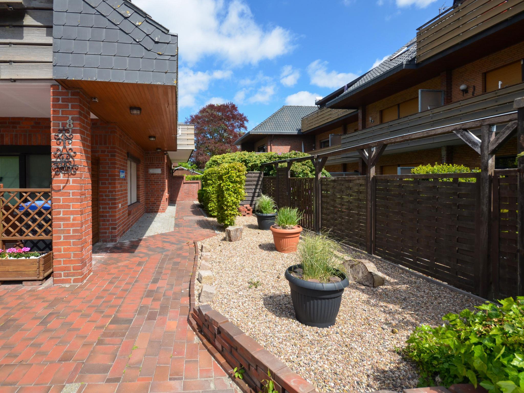 Apartment block "Windrose". In the resort, 300 m from the centre, 2 km from the sea, 2 km from the beach, located by a road. For shared use: property 3'000 m2 (fenced), garden, lawn for sunbathing, indoor pool heated (5 x 13 m, depth 160 cm, seasonal availability: 15.Mar. - 15.Nov.). Table tennis, terrace, garden furniture, barbecue, children's playground. In the house: reception, lounge, sauna (extra). Solarium (extra). Central heating system. Parking at the house. Shop 300 m, grocery 500 m, restaurant 300 m, café, bus stop 600 m, railway station "Nordenham" 20 km, sandy beach 2 km.