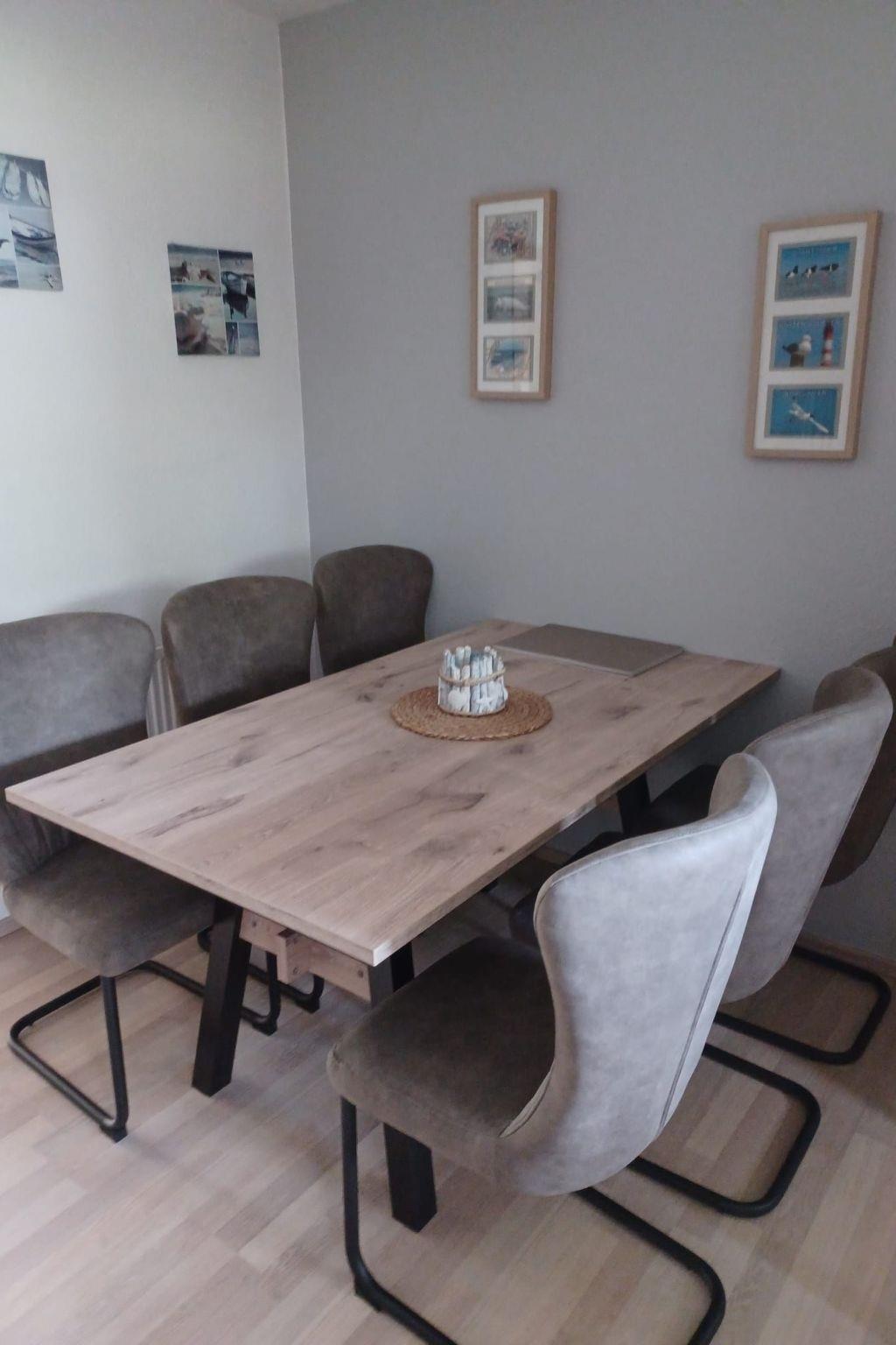 Our house is located on a fenced property which also includes two car parking spaces. The beach can be reached on foot in approx. 7 minutes. The terrace with fenced garden invites you to sunbathe. Garden furniture and a parasol round off the cosy atmosphere. The owners have actually furnished the house for their own use in a modern style and with a lot of love. Since 2017, we have also been renting out Möwe 16 to holiday guests. The modern living room is flooded with light thanks to its large windows. A living and seating area offers you plenty of space to linger. The flat-screen TV with satellite connection and the stereo system ensure cosy family evenings. WLAN is available free of charge for streaming music or simply checking the weather on your tablet or mobile phone. The high-quality kitchen is equipped with a convection oven, ceramic hob, dishwasher, microwave, fridge and freezer compartment. You will find everything you need for everyday cooking. Coffee machine, egg cooker, kettle, mixer and toaster are part of the kitchen equipment. Crockery and cutlery for 12 people are also available. Small items such as a can opener and corkscrew can be found in the kitchen drawers. The dining room between the kitchen and living room is furnished with a large wooden table and 6 chairs. Here the whole family can eat together or play board games. On the ground floor is the first bathroom with shower, WC and wash hand basin. A further bathroom with shower, WC and two washbasins is located on the first floor. The bathroom on the first floor is larger than the bathroom downstairs and is equipped with a washing machine. The master bedroom with a double bed, wardrobe and travel cot is located on the first floor. There is another bedroom on the same floor. The third bedroom is on the top floor. In this very spacious room there is a bed and a wardrobe. The entire house has wipeable and smooth floors.
