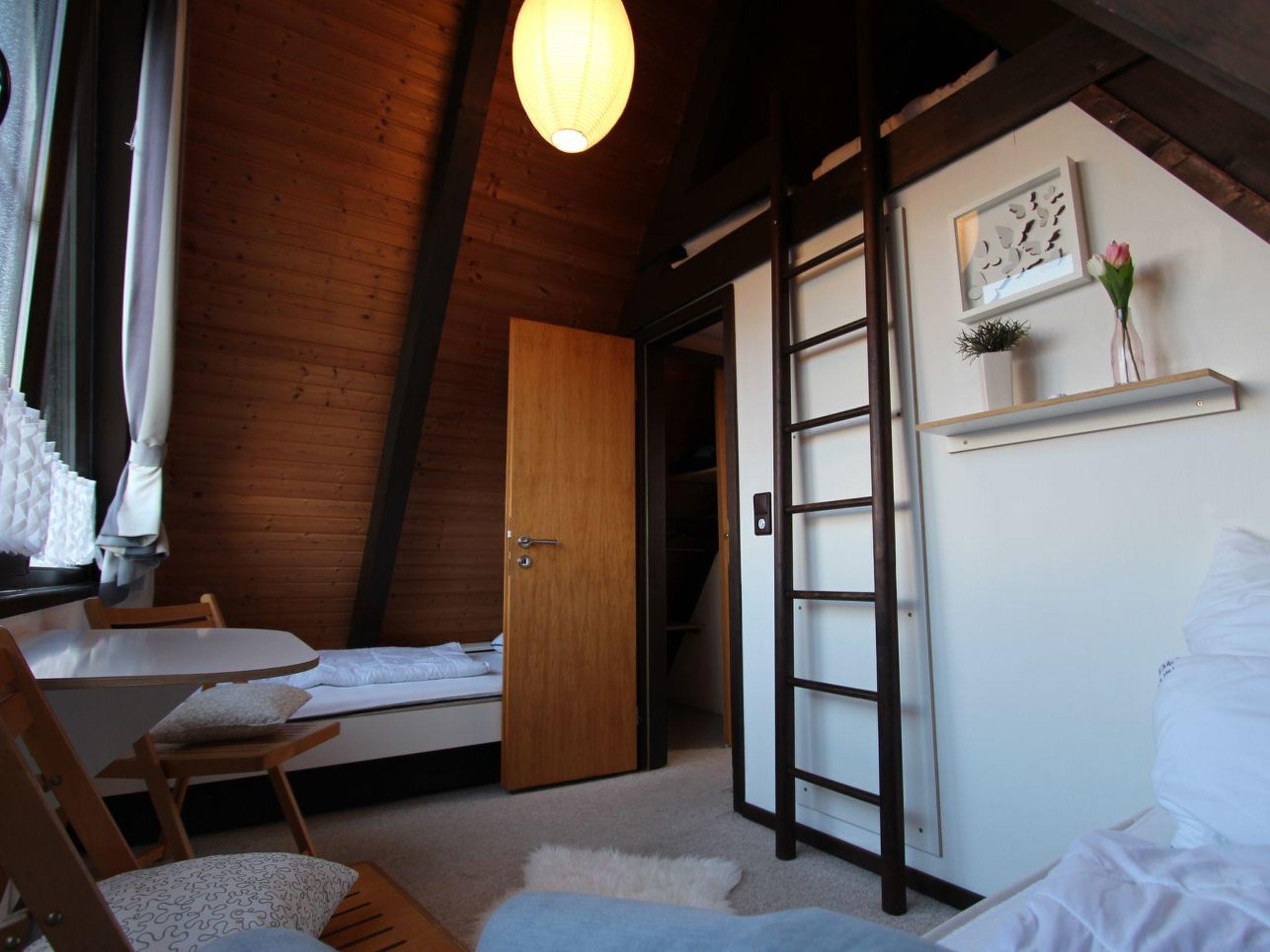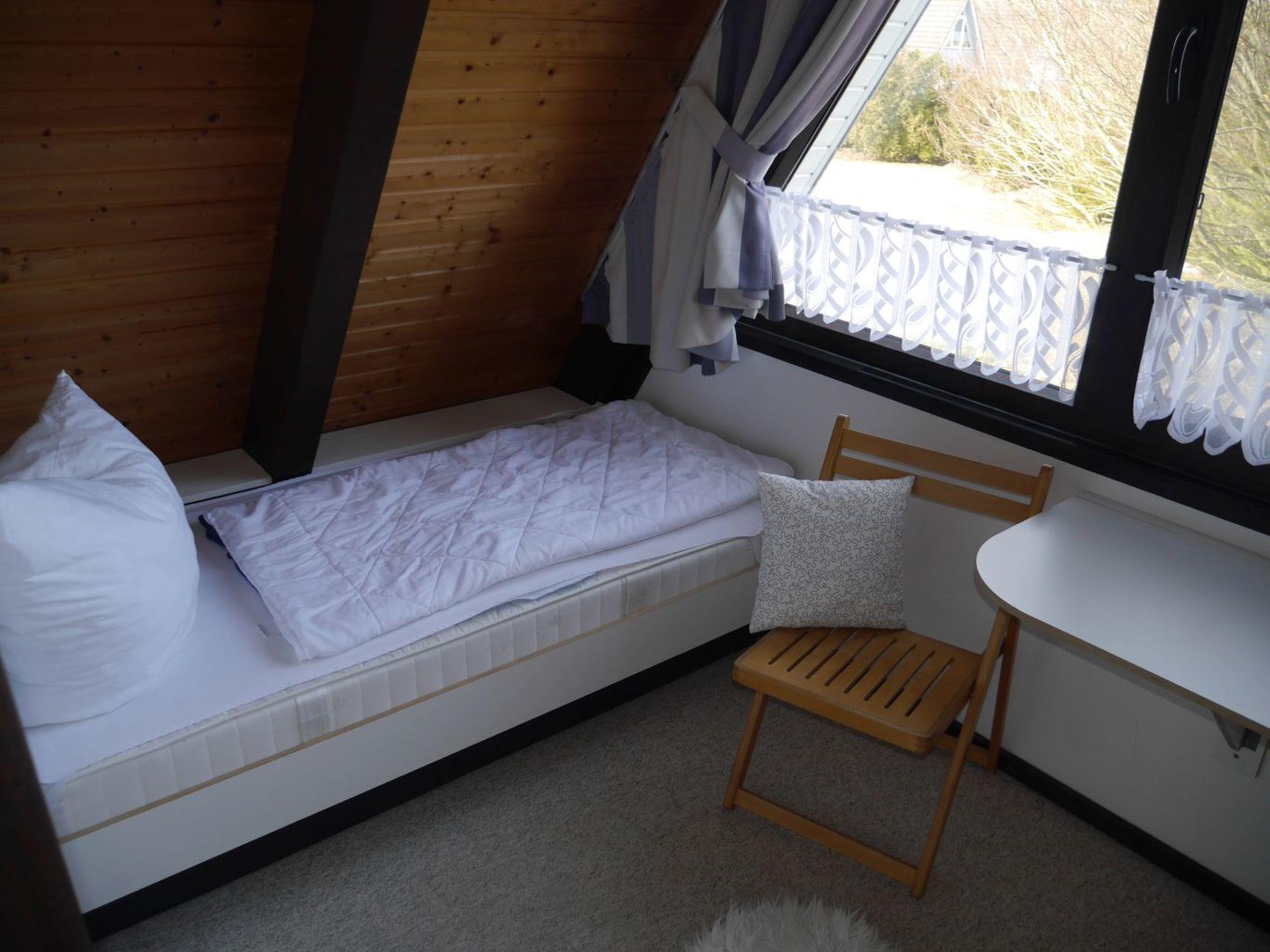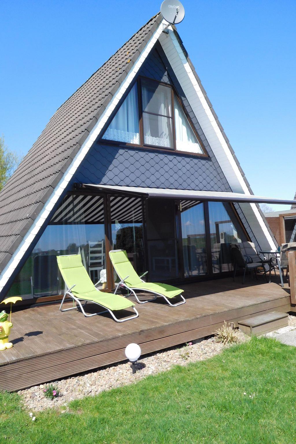 The house has 1 bedroom with a double bed and 1 bedroom with 2 single beds on the upper floor. There is also a bed in the gable for two small children, which can be reached via a ladder. The upper floor can be reached via a room-saving staircase. In addition to the spacious living room, which offers a nice large separate dining area, there is a small, well-equipped kitchen with ceramic hobs. The shower room is also on the ground floor. The garden is completely fenced in from April.