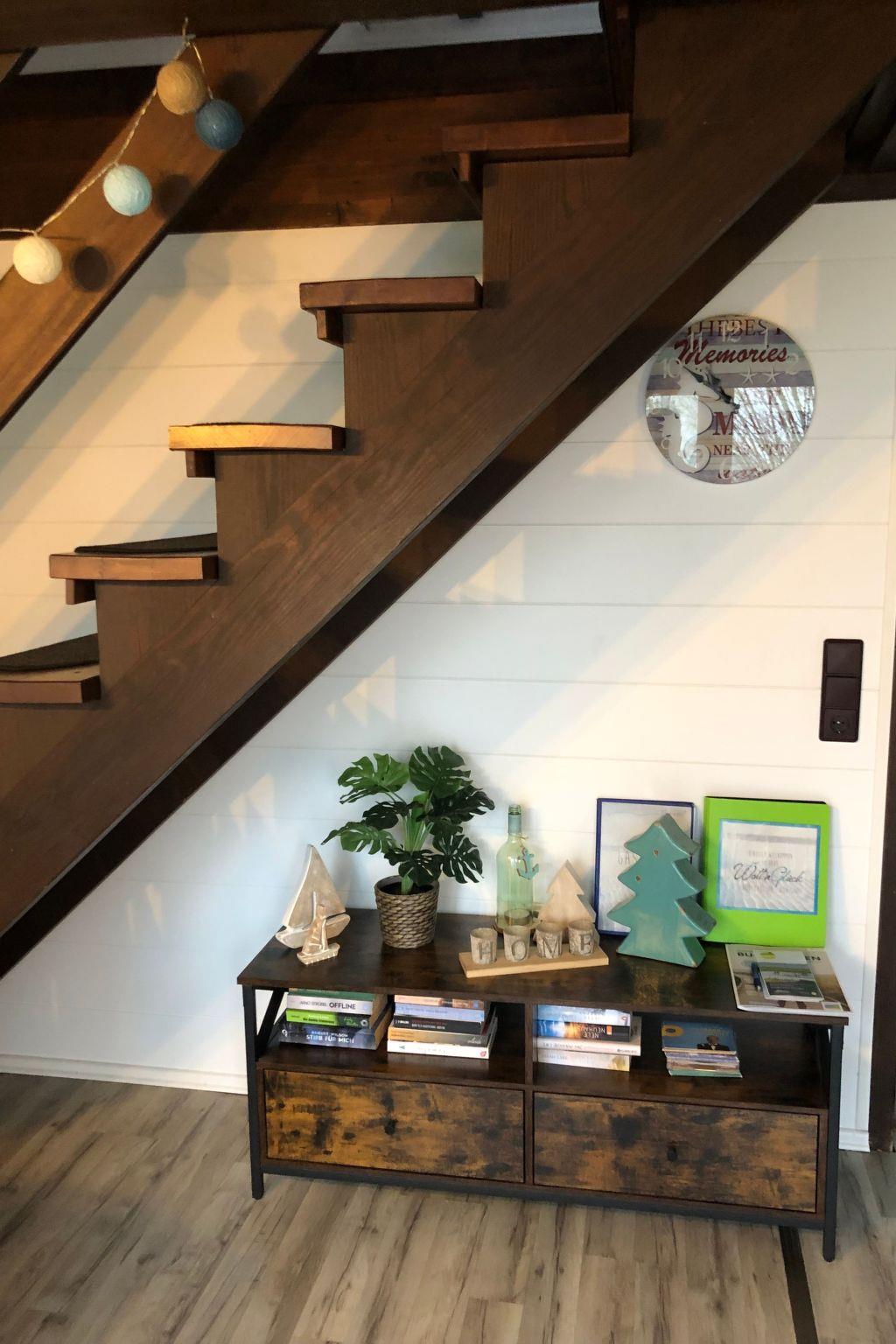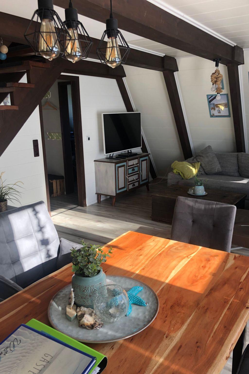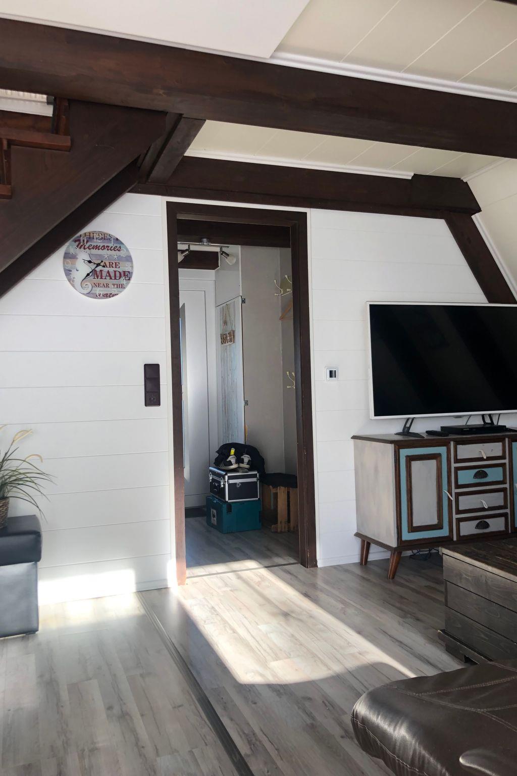 The house has a spacious living room with adjoining dining area. The open-plan kitchen is fully equipped (oven, microwave, dishwasher, toaster, standard coffee machine, Senseo coffee machine, kettle, fridge with freezer compartment, etc.) The new bathroom with shower, towel radiator and WC is also on the ground floor. There are 2 bedrooms on the upper floor. One bedroom with a double bed and the second with 2 single beds. A ladder leads from this bedroom to a "wigwam", which offers sleeping space for 2 children.